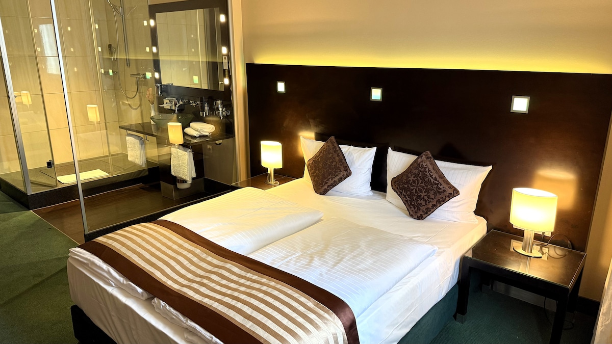 Unsere ruhig gelegenen Komfort-Zimmer bieten moderne, stilvolle Einrichtung mit komfortablem Bett, geräumigem Kleiderschrank und funktionalem Schreibtisch. Für Unterhaltung sorgt ein Flachbildfernseher mit Sat-TV, der französische Balkon bietet frische Luft und Ausblick. Das Bad verfügt über ebenerdige Dusche, WC und Föhn. Allergikerfreundlich, keine Haustiere. Kostenloses WLAN in allen Bereichen.