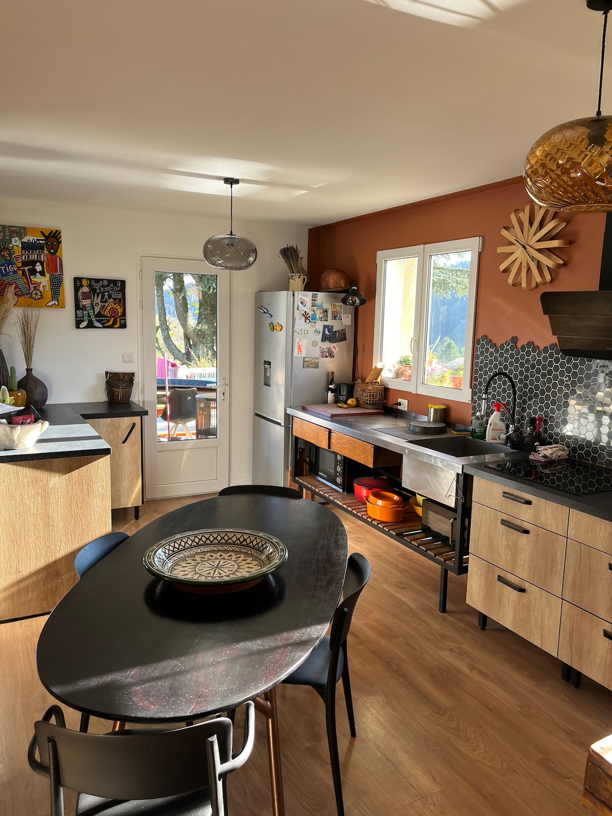 I - privatize ang buong bahay na ito; naisip bilang pahinga mula sa oras, pinaghahalo nito ang pagiging tunay at modernong kaginhawaan Isang intimate na kapaligiran, isang pribadong wellness area: isang tunay na cocoon para makapagpahinga; na may sauna at bathtub. Para sa isang espesyal na okasyon o maglaan lang ng oras para magkita, ang bawat detalye ay naisip na magbigay ng isang natatangi, banayad at nakakarelaks na karanasan. Dito, iniimbitahan ka ng lahat na idiskonekta, sa kasiyahan ng pagtikim sa kasalukuyang sandali.