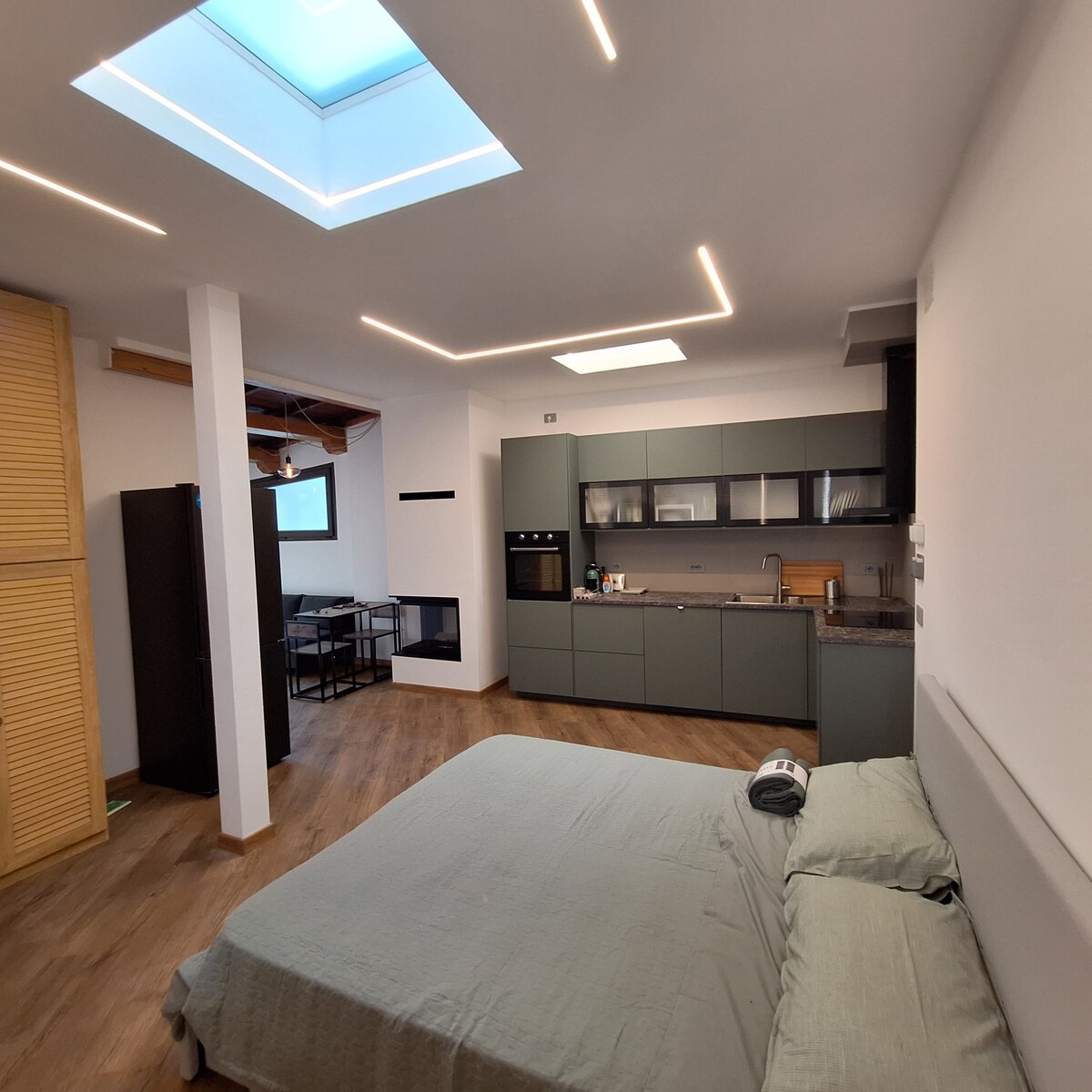Ganap na naayos na modernong studio na may maliit na kusina, malaking banyo at hiwalay na laundry area. Malaking karaniwang patyo na may kanlungan ng bisikleta at motorsiklo, mesa/upuan sa hardin, payong. Kumpleto sa smart TV, air conditioning, at WIFI. 5 minutong lakad papunta sa dagat, na matatagpuan sa isang residensyal na kapitbahayan, na may sapat na availability ng libreng paradahan sa kalye. Sa malapit ay may mga hintuan ng bus at Metromare (50m), risto/pizza, bar, panaderya, palengke, bangko. Mainam para sa mga mag - asawa o magkakaibigan.