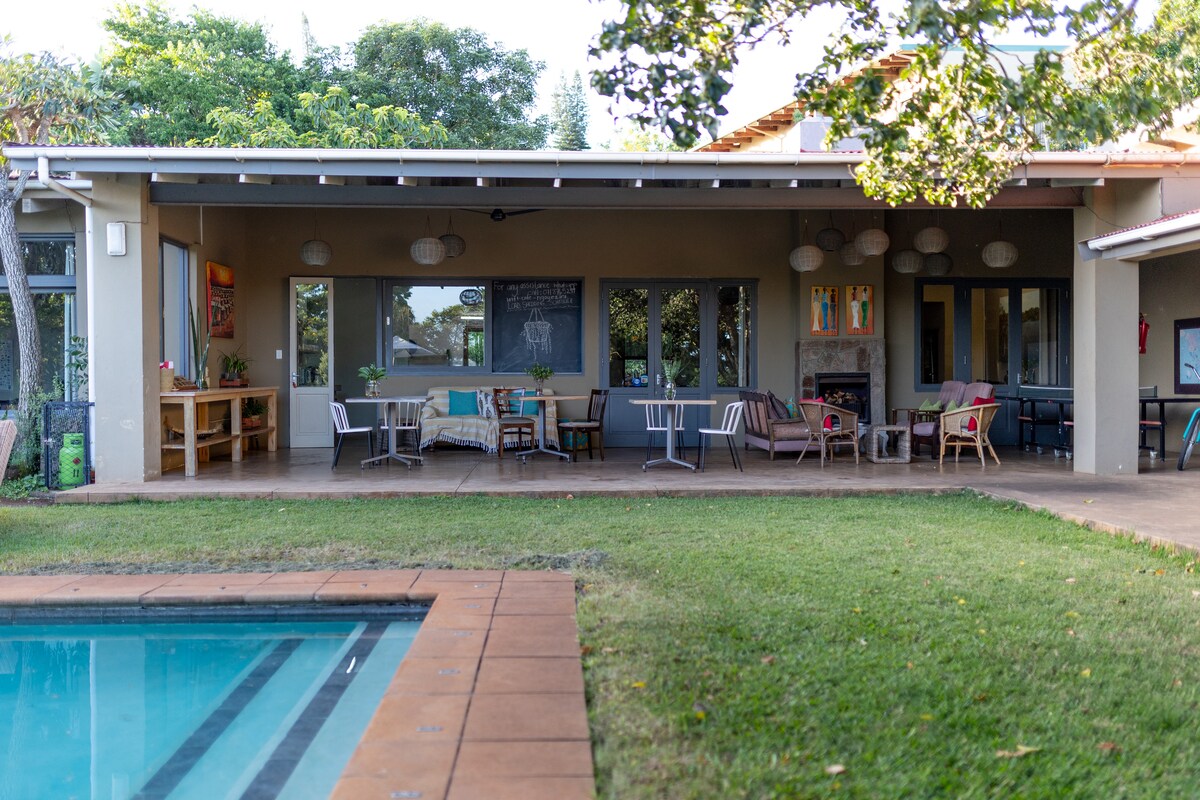 This bedroom has fully equipped kitchenette, tea/coffee trays, microwave and convection plate, DSTV, Netflix and YouTube and is air-conditioned. It has its own private garden and swimming pool views. It is an extra-large room with a study alcove. We do not allow any children due to safely and noise concerns.