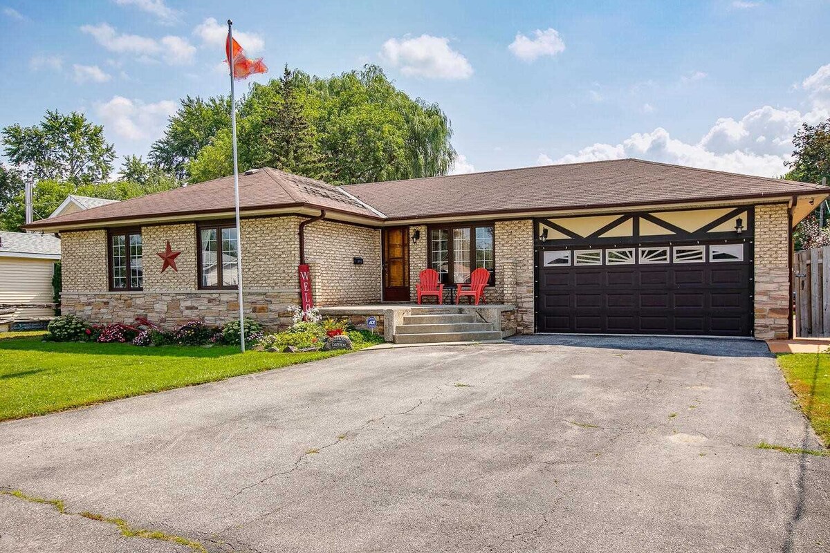 Almost 1 acre of land for you and your family to enjoy Free parking on premises Beautiful 4 bedroom cottage Comfortably sleeps 10 people Enjoy mini golf, pool table, and table tennis Open concept lounge and sitting area BBQ and firepit available for your use Walkout to deck with beautiful view of massive backyard Covered patio Soccer/Volley ball available upon request Located within minutes to trails, Lake Ontario, shopping and much more.