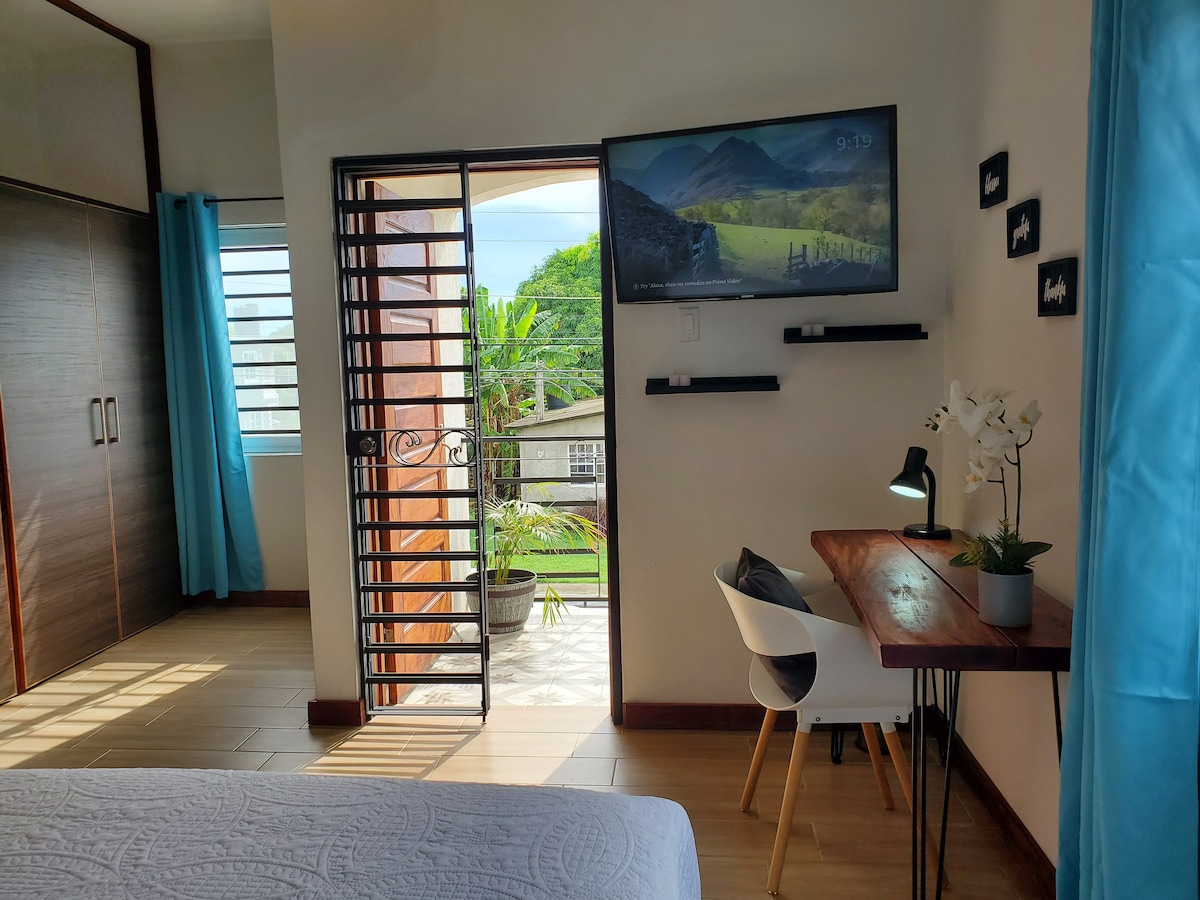 We are fully operational post Hurricane Melissa with power, water & wifi Unwind at this stunning ocean-view studio only 5 minutes away from the heart of Ocho Rios. The studio is freshly renovated with granite counter tops in the kitchen and bathroom, and porcelain tile throughout for a luxurious yet homey feel. Enjoy the vast ocean view and dip your toes in the water only a few steps out from the patio. This studio is the perfect place for relaxing, listening to the ocean and enjoying the breeze