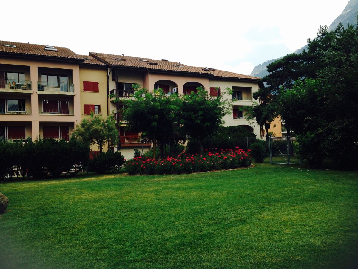 Salvan / Vallée du Trient. Joli studio indépendant dans une maison familiale très calme, tout confort avec cuisine équipée, coin à manger et salle d'eau. En bordure de forêt avec parcours santé à proximité, au départ de nombreux sentiers de randonnée de moyenne montagne. Place de parc. Proche des commodités, à 5 minutes à pied de la gare sur la ligne TMR Martigny - Chamonix. Zoo et piscine des Marécottes à 10 minutes. En hiver, navette gratuite pour Télémarécottes. Station "Magic Pass"