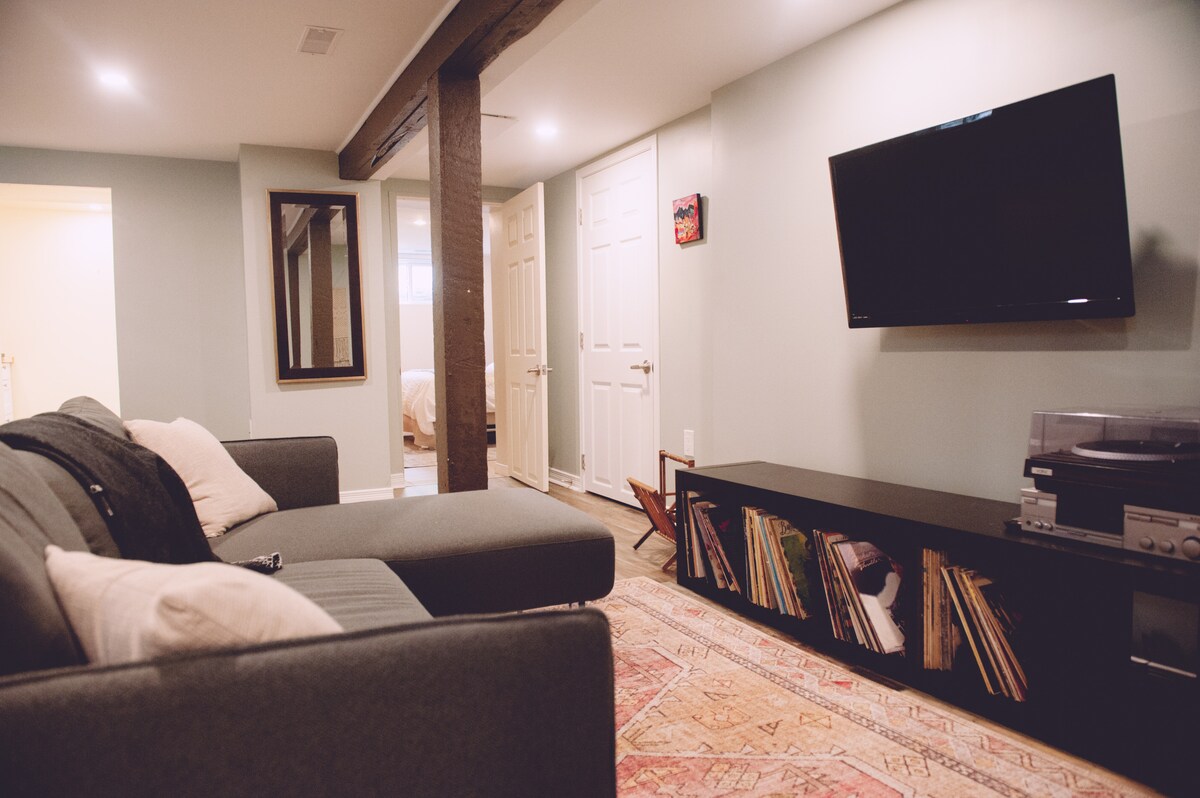 Elegante at mahusay na isang silid - tulugan na basement unit sa isang bungalow, na matatagpuan sa isang gitnang kapitbahayan ng Ottawa. Pinaghahatian ang saklaw na pasukan sa pagitan ng yunit na ito at ng isa pa. Ang maginhawang sariling pag - check in/pag - check out ay nagbibigay - daan sa maximum na kakayahang umangkop. Libreng on - street na paradahan sa buong taon. Tumatanggap ng 4 na bisita. Tandaan: Nakatira kami sa itaas kasama ang mga batang bata. Habang ginagawa namin ang aming makakaya upang mabawasan ang ingay mula sa mga bata, malamang na marinig mo ang mga ito na tumatakbo at naglalaro.