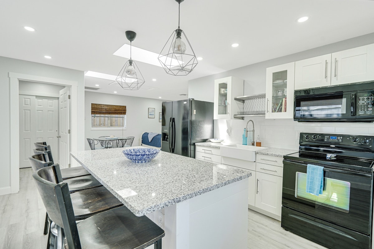 Ang Sunshine Suite.Lots ng natural na liwanag sa ganap na na - update na modernong 3 bed/1 bath home.Ito ay isang ganap na hiwalay na tirahan na hiwalay na entry mula sa iba pang tirahan sa ari - arian na nagbabahagi ng walang mga karaniwang pader. Smart thermostat at lock ng pinto. Keyless entry.Brand bagong AC, gas oven, kuwarts counter w/ custom marble backsplash, moderno at komportableng kasangkapan, pribadong panlabas na lugar, gas BBQ grill, off street parking.Great location! Mga minuto papunta sa Siesta Key beach, shopping/UTC, interstate, ospital at downtown
