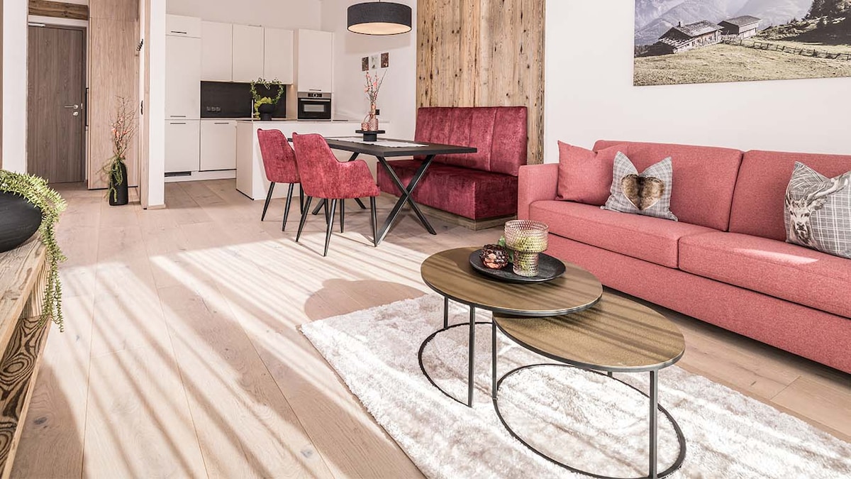 Sa Junior Suite na may kategorya ng tanawin ng bundok, makikita mo ang isang higit sa 30m2 apartment para sa hanggang sa tatlong tao na may king size double bed at isang mataas na kalidad na single sofa bed. Nagtatampok ang apartment ng kusinang kumpleto sa kagamitan na may maginhawang sitting area, marangyang banyong may oversized shower at washer - dryer, at 10 m² terrace na may sapat na seating para sa nakabubusog na outdoor breakfast na may mga nakamamanghang tanawin ng mga bundok ng Tyrolean.