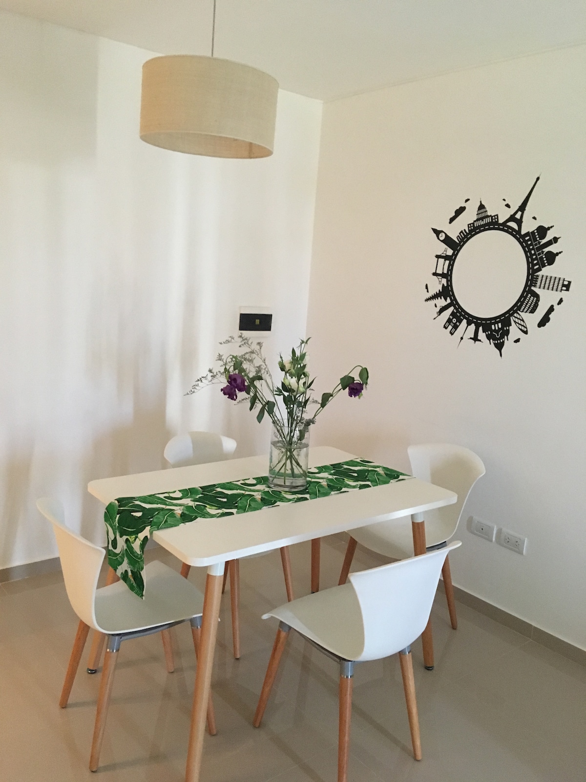 Departamento nuevo! Súper cómodo, muy bien equipado con todo lo necesario para que te sientas a gusto, asador en el balcón y una hermosa piscina en planta baja. La ubicación es excelente, centro comercial a 1 cuadra, la terminal de buses en frente, seguridad las 24 hs. Tiene una cama matrimonial y un sofá cama que se hacen 2 camas individuales. Cochera cubierta opcional.