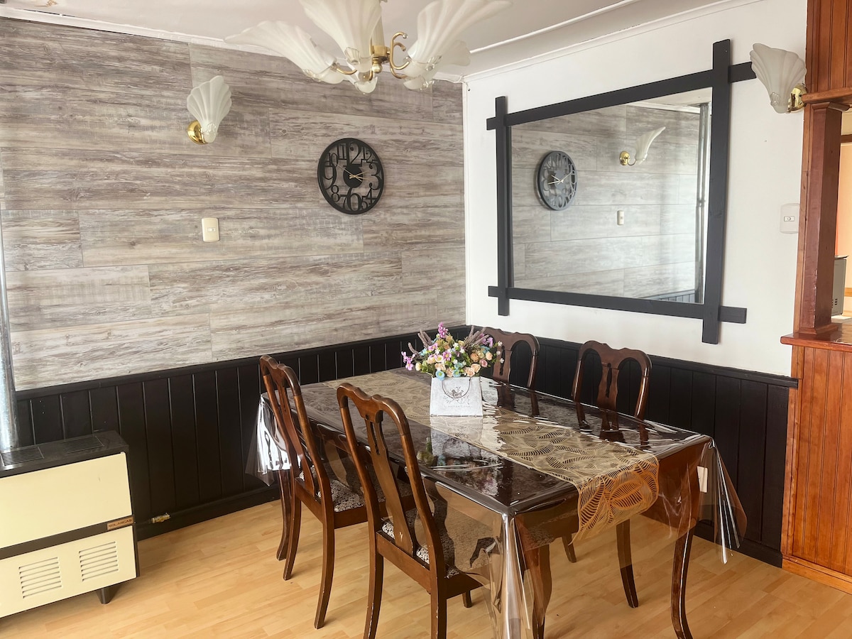 Tuklasin ang kaakit - akit na cottage na ito na matatagpuan sa tahimik na sektor, mainam na magpahinga at mag - enjoy sa lungsod. Maaraw ang cabin at may kasamang lahat ng kailangan mo para sa iyong kaginhawaan. 6 na minutong biyahe lang papunta sa Zona Franca at Mall Espacio Urbano. 8 minuto mula sa Downtown at Plaza de Armas. Perpekto para sa mga naghahanap ng kaginhawaan at madaling access sa mga pangunahing interesanteng lugar sa Punta Arenas. Hinihintay ka namin!