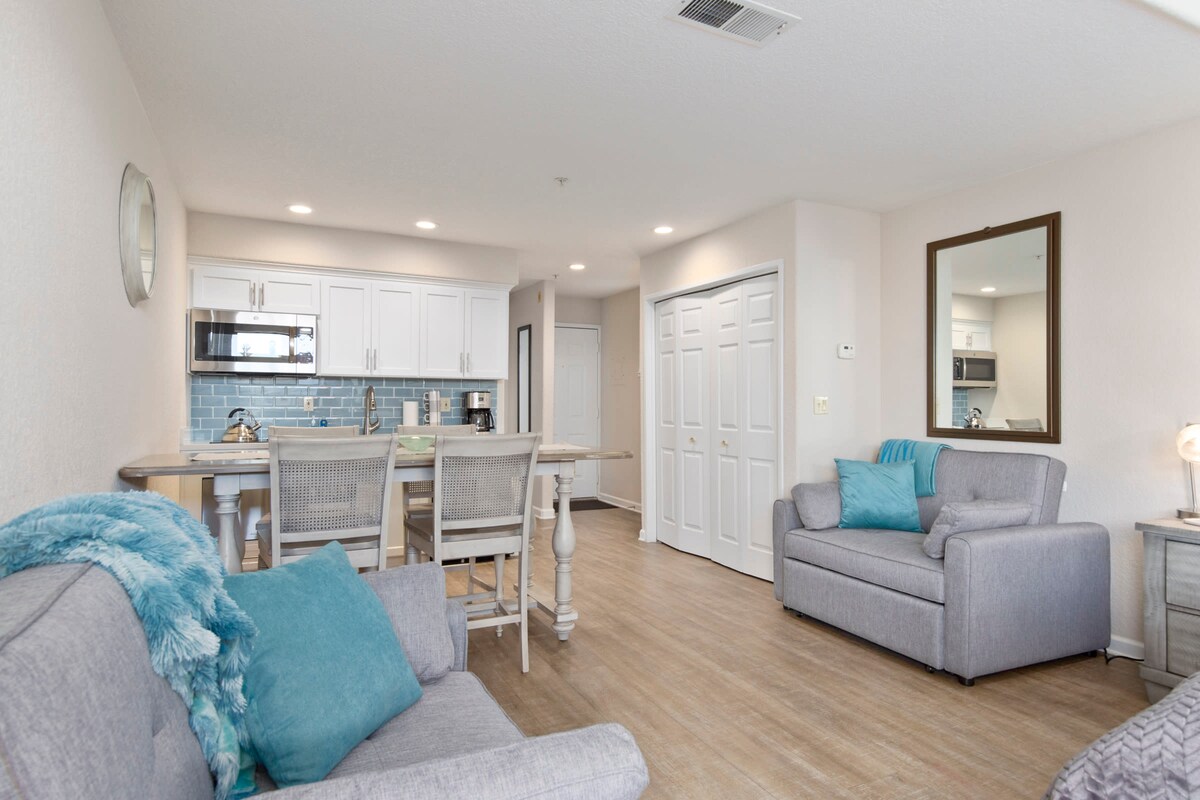 Kung naghahanap ka ng pinakamaganda, nahanap mo na ito. Walang mas malaki o mas magandang 1 silid - tulugan na condo sa pangunahing gusali sa Seascape. Ito lamang ang 864 sq ft na yunit na may tanawin ng karagatan na balkonahe at maraming mga bintana upang makapasok ang ilaw! Oh, at may aktwal na kusina na may full size na refrigerator at dishwasher. Kahit anong espesyal na okasyon ang magdadala sa iyo sa bayan, ito ang condo na gusto mong manatili! Ang Seascape Beach Resort ay may mga kamangha - manghang sunset, malambot na mabuhanging beach, mga nangungunang restawran, at napakaraming amenidad.
