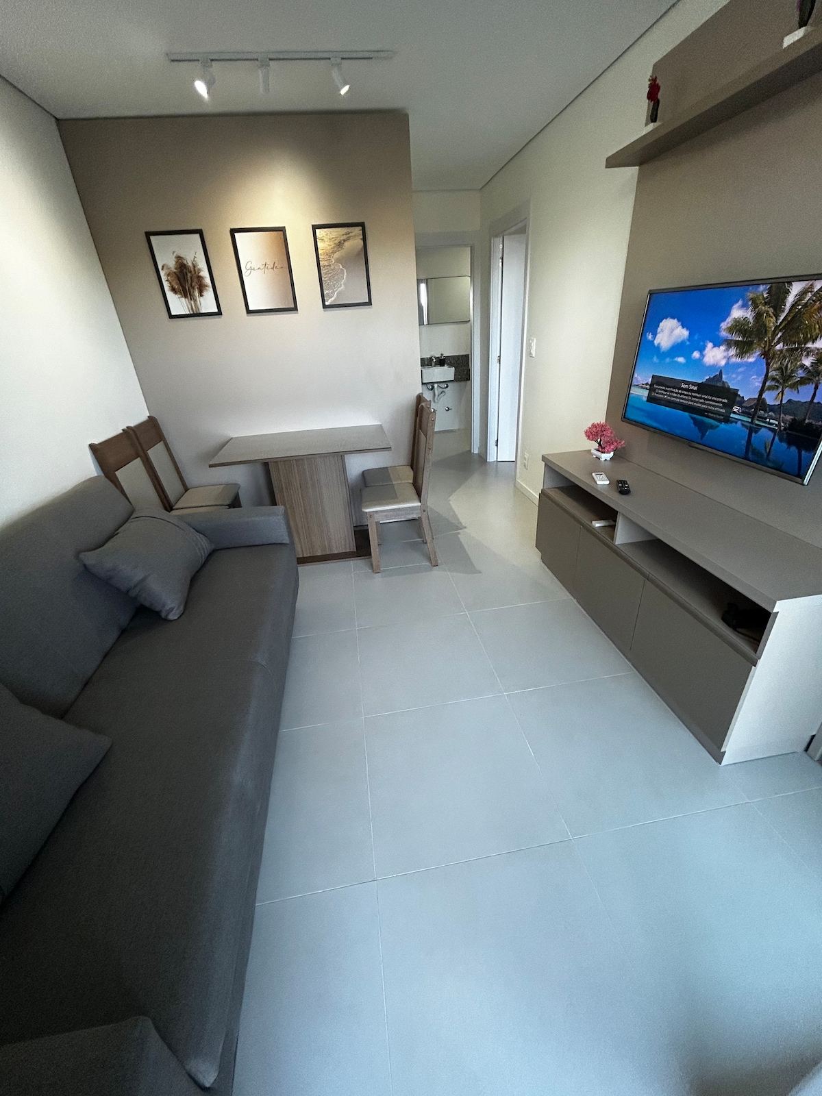 Apartment ng mahusay na pamantayan, bagong konstruksiyon, na may lumulutang na sahig, porselana tile, cable TV (Net), internet at modernong dekorasyon. May pribilehiyong lokasyon 100 metro mula sa rebulto ni Iemanjá at sa dalampasigan. Mayroon itong parking space at gourmet space na may barbecue (ng Condominium). Walled parking patio na may electric fence at automated gate access. Makakatulog nang hanggang 3 tao. Mayroon itong dalawang bentilador at lahat ng gamit sa kusina.