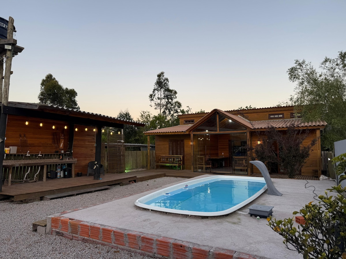 Venha desfrutar de encantadora cabana em meio a amplo espaço verde e próximo ao Cassino. O espaço é idealizado para casais mas pode acomodar até 4 pessoas. A estrutura da cabana inclui: banheira dupla com hidro, chuveiro à gás, churrasqueira/parrilla e lareira interna, ar condicionado, tv 42, cozinha completa com utensílios, área de redes e fogueira e deck. Um ambiente planejado, rico em detalhes e charmoso em suas área interna e externa. Disponível Sala de Spa, sauna e jacuzzi (valor a parte).