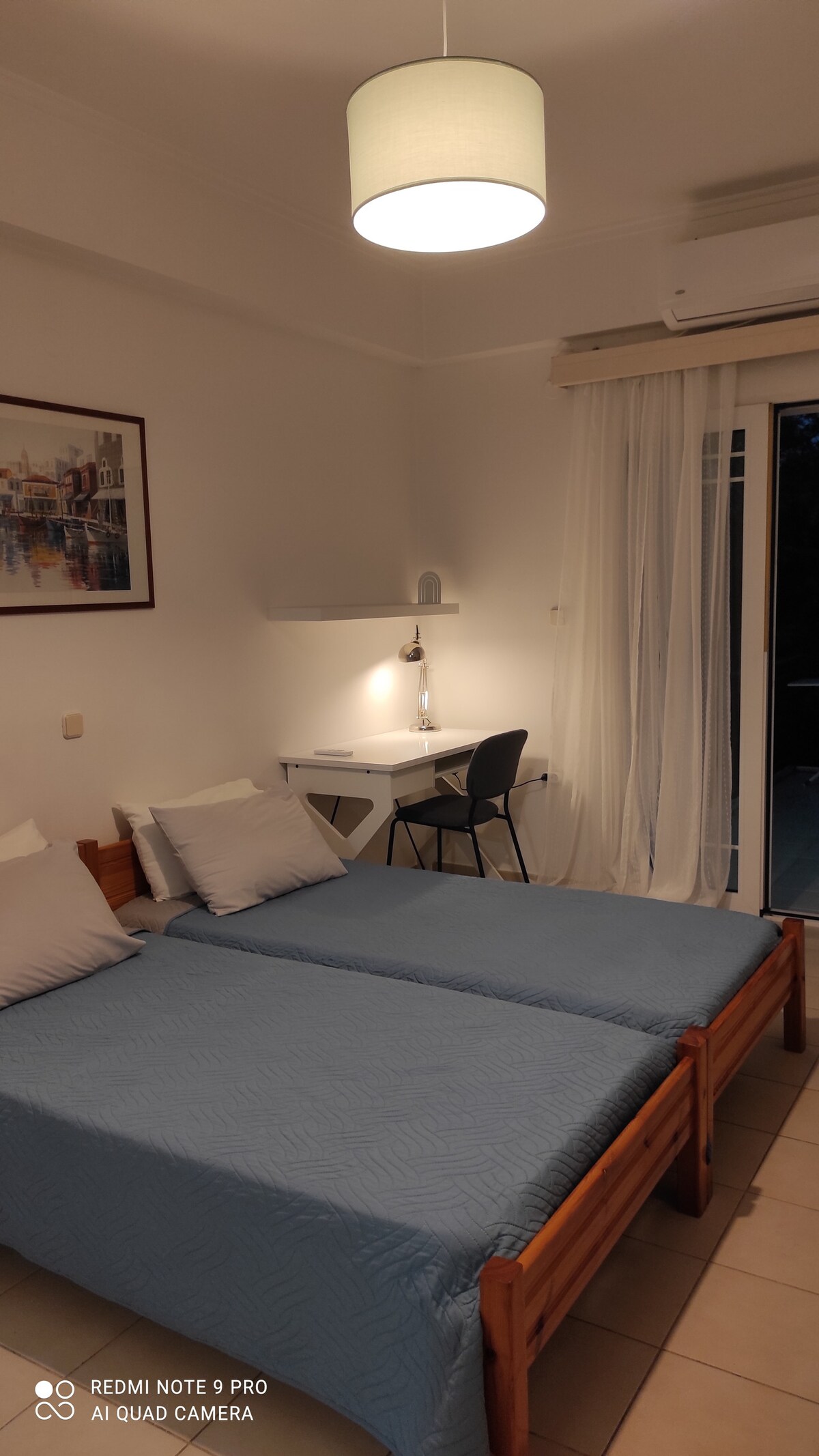 Ito ay isang self - contained studio, 28 sqm sa ika -1 palapag kung saan maaari kang magkaroon ng kaaya - aya at komportableng pamamalagi. Inaalok ang studio, hindi lang para sa mga panandaliang pamamalagi kundi para rin sa mga pangmatagalang pamamalagi. Matatagpuan ito malapit sa Arachovitika beach (100m2) at sa Drepanoormor Kind, na kilala sa kite surfing. Ang University of Patras ay 6km ang layo, habang ang sentro ng Patras ay 17km ang layo. Sa wakas, isa itong residential complex sa isang tahimik na lugar sa mga puno ng olibo. Ikinagagalak naming i - host ka!!!