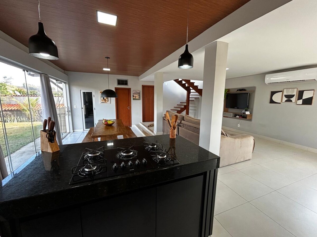 Bagong gawa na bahay, modernong arkitektura, mahangin, maliwanag, malinaw na kapaligiran, kuwartong gawa sa salamin na lumilikha ng kabuuang pagsasama sa kalikasan sa kapaligiran at nagbibigay - daan sa iyong i - enjoy ang tanawin ng bundok, lambak at paglubog ng araw, isang proyekto sa pag - iilaw na nagbibigay ng kapaligiran ng kaginhawahan, isang gourmet area na may magandang tanawin. Bahay na nag - aalok ng lahat ng mga amenities para sa wasto at kumportableng operasyon. Sa loob ng Retiro do Chalet Condominium, maraming seguridad, kaginhawahan at kalikasan, 31 km mula sa Inhotim.