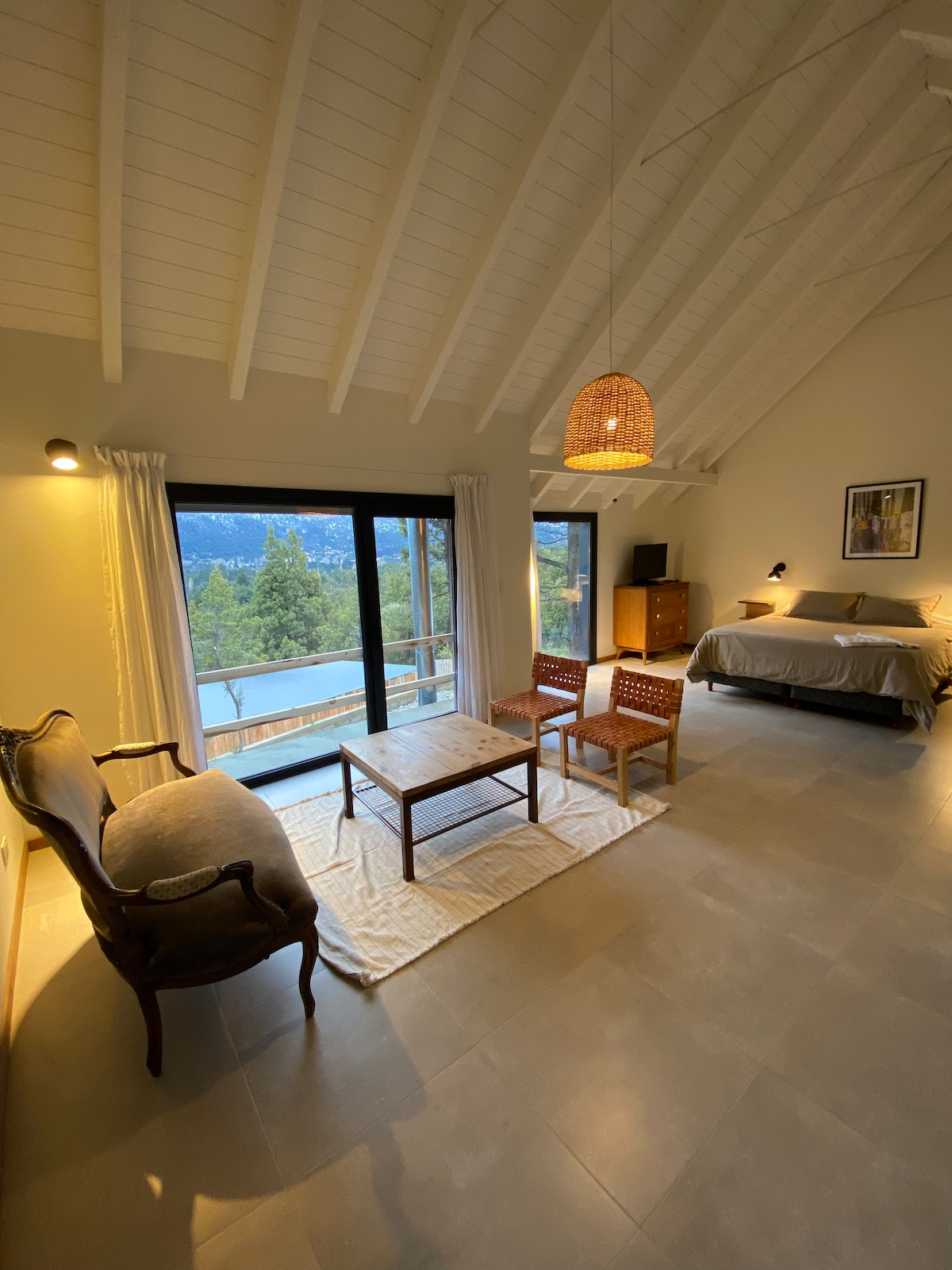 Magrelaks sa natatangi at tahimik na akomodasyon na ito. May mga kamangha - manghang tanawin ng lawa at kabundukan. Pribadong access sa Lago Nahuel Huapi, sa pamamagitan ng isang sloping trail, na iginagalang ang heograpiya, upang tamasahin ang pier at ang deck nito (ibinahagi lamang sa aming mga bisita). Itinuturing na reserve area ng flora at palahayupan ang San Pedro Peninsula. Matatagpuan ito 20 km mula sa Lungsod ng Bariloche. Napapaligiran nito ang kapaligiran ng kalikasan ng Patagonia sa pinakadalisay na estado.