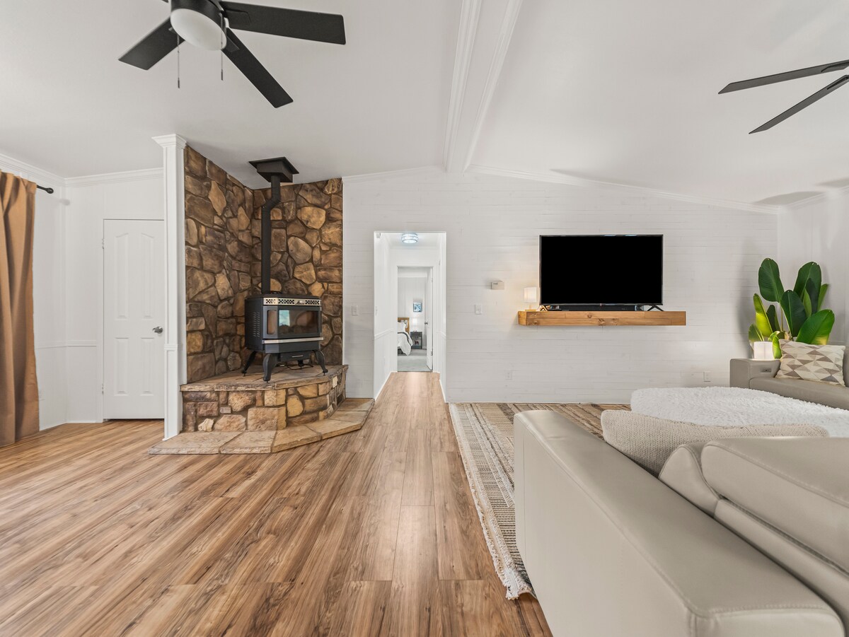 Nag-aalok ang natatanging bahay sa probinsya na may 2 kuwarto na ito, na matatagpuan sa 10 acre na halamanan ng pecan, ng tahimik na bakasyunan na napapaligiran ng kalikasan at 22 minuto lamang ang layo sa Little Rock. Modernong inayos na kusina Starlink Wifi BBQ W/D Itinampok sa pelikula at TV Napakagandang pagsikat at paglubog ng araw EV charger I‑click ang puso sa kanang sulok sa itaas para idagdag sa wishlist mo! 5-star na review: “Hindi ito lubos na naipapakita sa mga litrato… Mayroon itong kalmado at mapayapang aura…” “Nabasa namin ang tungkol sa rate ng krimen sa LR, pero talagang naramdaman naming ligtas kami rito… komportable at tahimik”