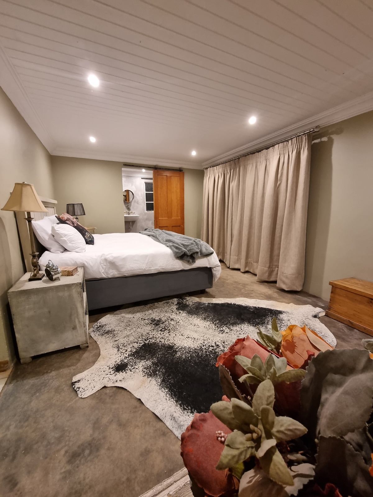 May perpektong kinalalagyan, isang silid - tulugan na may en - suite na banyo. Hiwalay na pasukan. Mga 10 minutong biyahe kami mula sa Kimberley Airport, na nagkokonekta sa N8 at N12. Whistling Kettle Coffee shop at Annique Beauty & Day Spa sa kabila ng kalye. Mga 250 metro ang layo ng Diamond Pavilion Mall. 7 minutong biyahe mula sa Mediclinic Gariep, NC Mall, Suzuki Stadium, Sol Plaatje University at Mga Paaralan