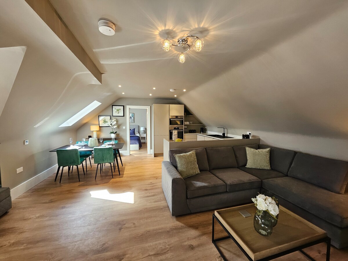 A wonderful, welcoming barn conversion in an excellent location on the Hampshire / Berkshire border. Exposed beams provide a lovely rustic feel in the large, light and open plan living space. Kitchen has 2 induction hobs and microwave and a mini fridge. Cooking utensils available in the well stocked kitchen. Reliable wifi, large digital flatscreen TV and Sonos music system. Twin beds in a homely bedroom with separate shower room.