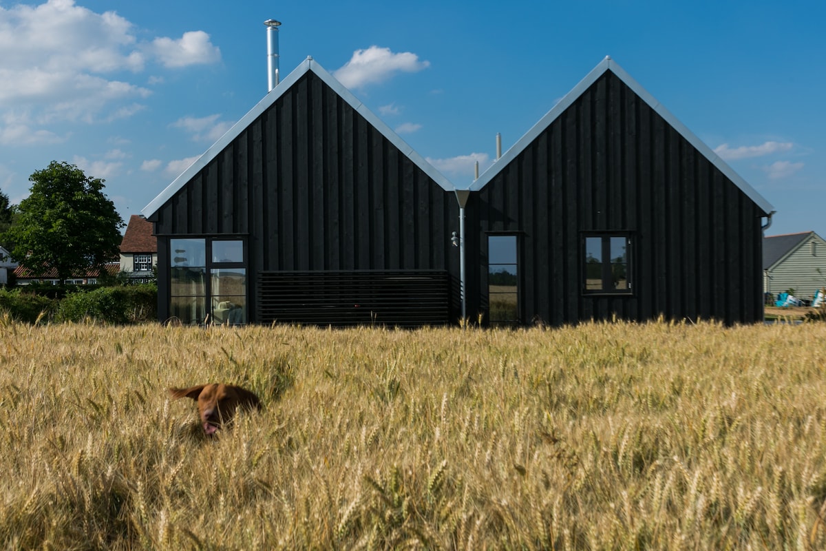 Maghinay - hinay at magrelaks sa romantikong bakasyunan sa kanayunan na ito sa gilid ng Constable country. Ang Hay Barn, kasama ang mga wonky beam at wood - burning stove, ay mapayapang nakaupo sa mga ektarya ng rolling farmland, mga sandali mula sa ilan sa mga pinaka - iconic na tanawin ng Suffolk, kabilang ang Sutton Hoo - na itinatampok sa The Dig ng Netflix. Gumising sa splashing ng mga ligaw na mallard sa lawa, pumili ng mga makatas na plum mula sa halamanan, at mag - set off sa isang pakikipagsapalaran sa mga bukid. Perpekto para sa paglalakad, pagbibisikleta, paggalugad o simpleng pagtatago.