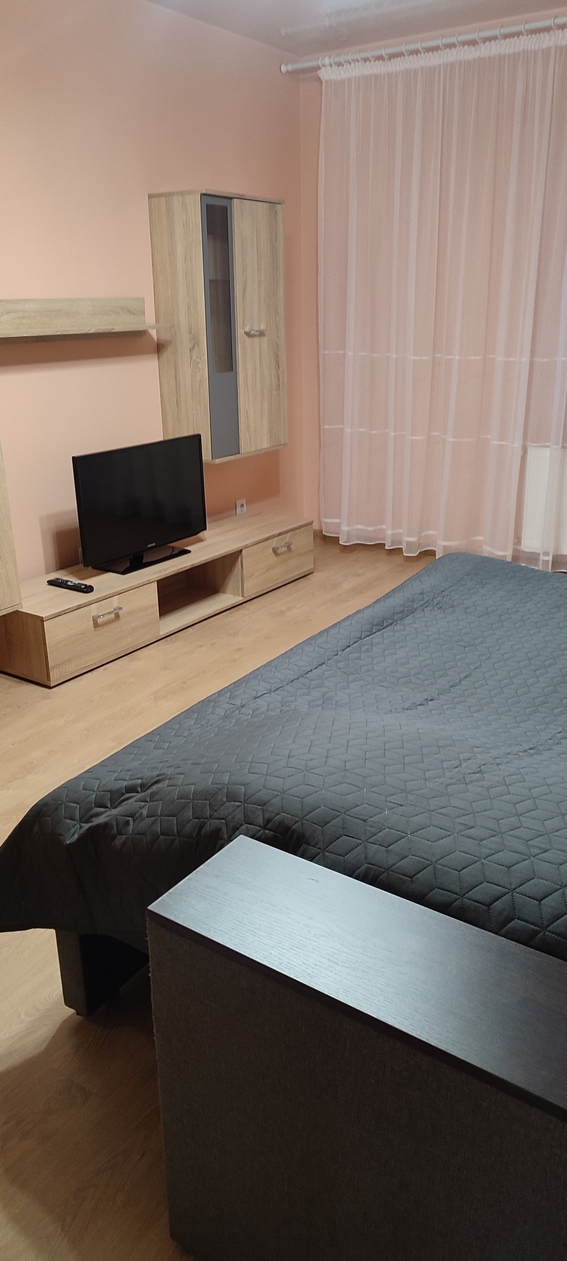 Mag - enjoy sa naka - istilong karanasan sa lugar na ito na may gitnang lokasyon. Ang apartment ay may malalaking malalawak na bintana na nagdaragdag ng espasyo at mga oportunidad para ma - enjoy ang mga tahimik na tanawin. Ang isang malaking kama at isang orthopedic mattress ay magbibigay ng magandang pagtulog . Ang walk - in closet ay kumportableng tumanggap ng maraming bagay. May workspace. Ang lahat ng nasa kusina ay ibinibigay para sa pagluluto ng iyong mga paboritong pagkain. Binuo ang imprastraktura : mga bar at restawran, coffee shop , supermarket, McDonald 's, dalawang malaking parke ng libangan.