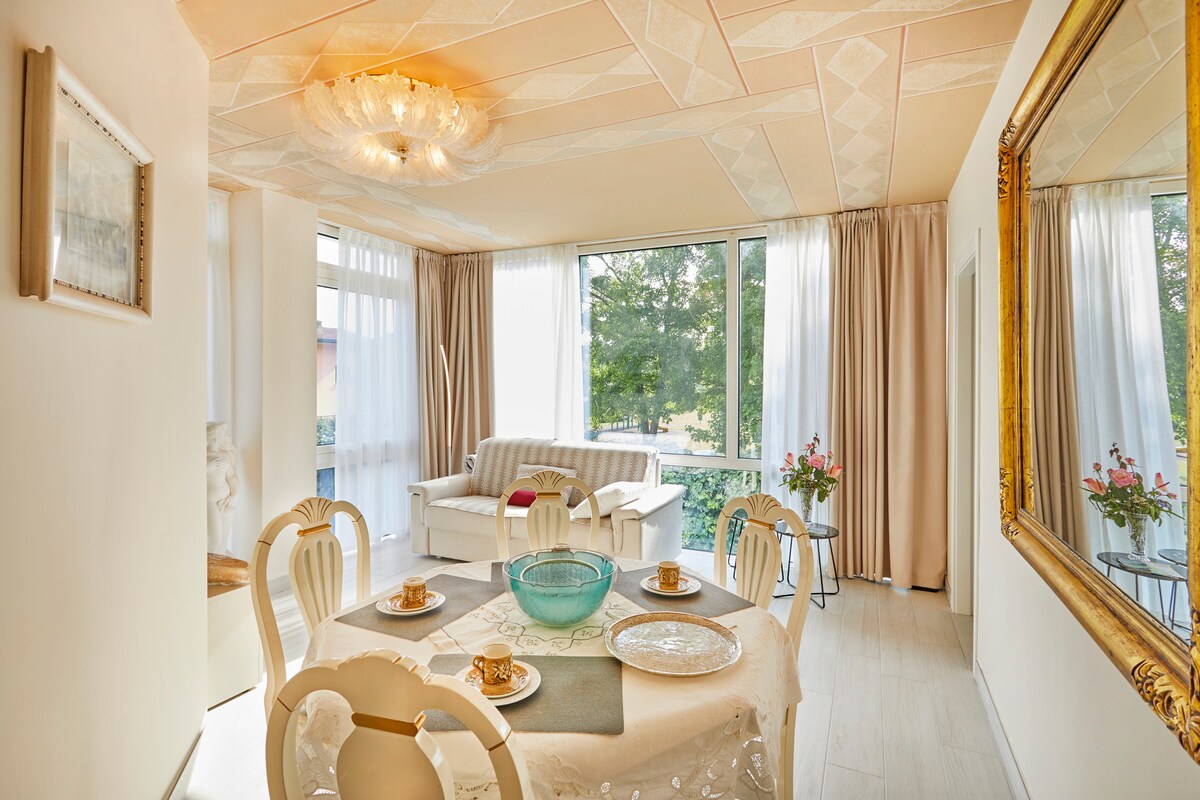 Ang Skyline, Horizonte, ay isang eleganteng penthouse na matatagpuan sa sentro ng Desenzano del Garda. Tinatangkilik nito ang isang pribilehiyong posisyon na 200 metro mula sa makasaysayang sentro at sa lawa kasama ang magandang promenade nito. Malapit ang Skyline sa isang lugar na puno ng mga tindahan, bar at restawran, na nasa maigsing distansya lang. 500 metro lamang ang layo ng istasyon ng tren at ang labasan ng motorway para sa Milan o Venice (A4) ay halos 3 km ang layo.
