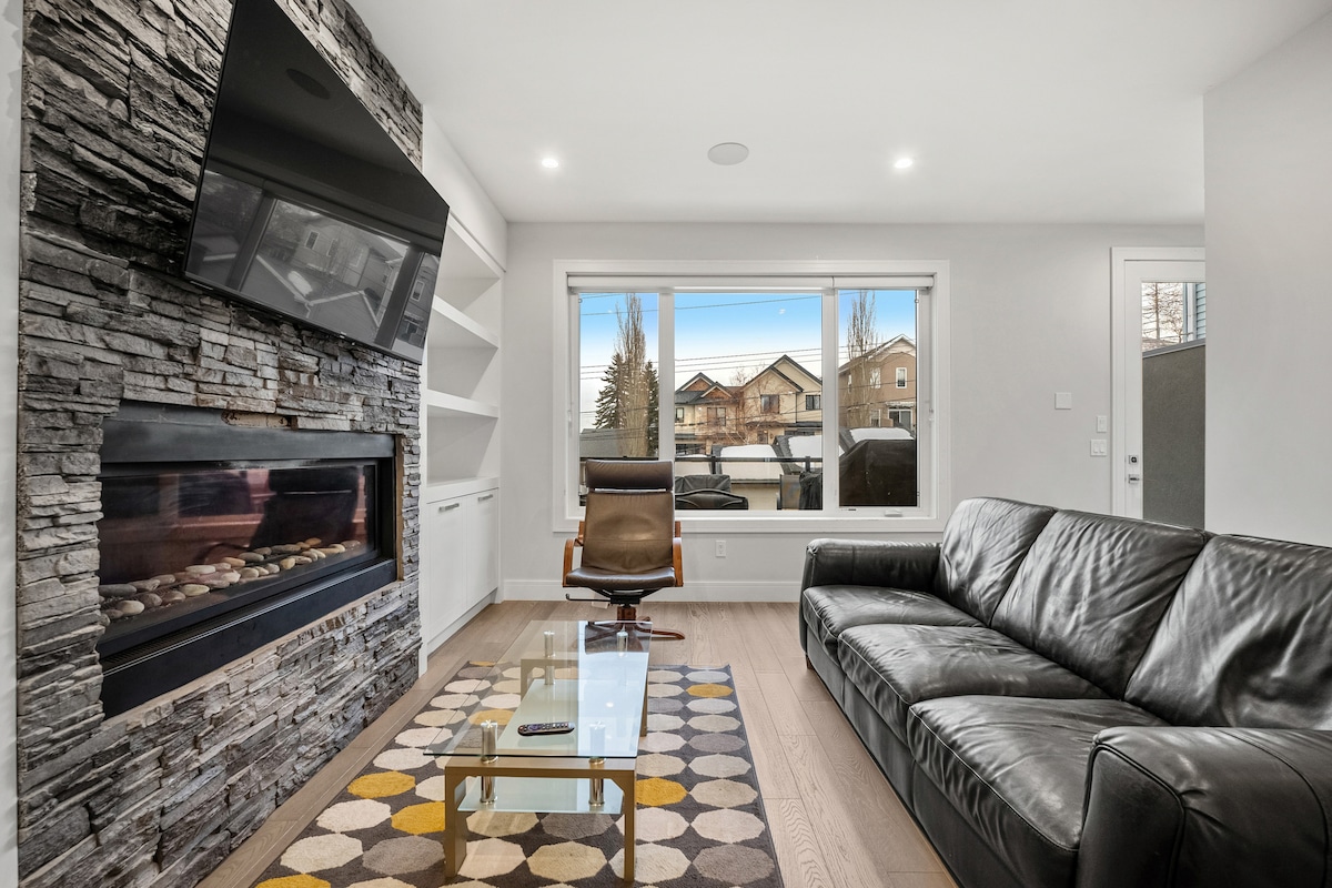 Matatagpuan sa gitna ng Parkhill, perpekto ang modernong 3 palapag na duplex na ito para sa malalaking pamilya o grupo. Matatagpuan ilang minuto lang mula sa ilan sa pinakamagagandang restawran sa Calgary sa Mission, ang mga daanan sa paglalakad sa Stanley Park/Elbow River, Chinook Mall, 39th Ave LRT at Downtown! Tangkilikin ang mga sunset at downtown skyline mula sa mga balkonahe ng ika -2 at ika -3 palapag. Magtrabaho mula sa bahay gamit ang aming 1 gig wifi at 3 itinalagang lugar para sa trabaho. Maglibang sa aming gourmet na kusina na may mga propesyonal na kasangkapan at pag - upo para sa 12 tao. BL#252543