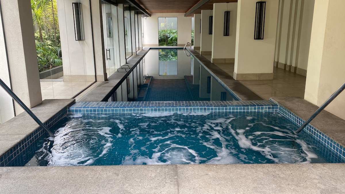 Mag‑enjoy kasama ang buong pamilya sa sopistikado at napakaluntian na tuluyan na ito. Bahay na may 2 kuwarto (1 suite) at isa pang kuwarto na may 3 high‑end na single bed na Emma, buong bahay na may rustic na industrial style, swimming pool, gourmet area na may barbecue area, solid na kahoy na mesa para sa 8, katabi ng metro tree square (600m), labahan at pamilihan sa harap mismo ng bahay, tahimik na kapitbahayan na malapit sa lahat. Nakahanda ang bawat bahay para sa home office, na may wifi sa buong tirahan.