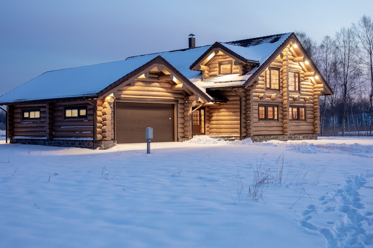 Magrelaks sa isang kamangha - manghang log building na may bubong sa dalampasigan sa Kaltene! Matatagpuan ang property sa isang napakaganda at tahimik na lugar sa gitna ng malalaking puno. Ang bahay ay matatagpuan 55 m mula sa dalampasigan na may isang maganda, halos pribadong beach kung saan makikita ang mga swan at iba pang mga ibon halos araw - araw. Mula sa mga bintana ng bahay, mapapanood mo ang pagsikat ng araw sa umaga at sa gabi sa dalampasigan ang magandang kalangitan sa paglubog ng araw.