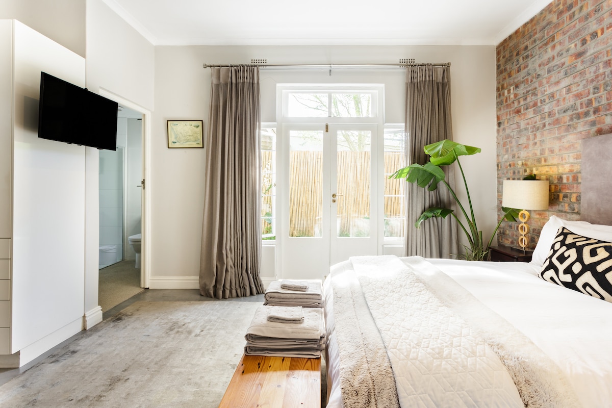 Huwag mag - tulad ng pinalayaw sa kagandahan ng yesteryear sa 1800 's manor ng Mount Pleasant. Kumain ng al fresco sa tabi ng iyong pribadong pool sa makasaysayang property na ito na matatagpuan sa ilalim ng Table Mountain. Magrelaks sa isang baso ng Cape wine sa gracious at romantikong guest suite na may sariling hardin na puno ng ubas, o mamaluktot sa isang armchair sa tabi ng Grand stone fireplace. Mainam para sa mga mag - asawa at batang pamilya ang maluwag at maaliwalas na open - plan na guest suite. May gitnang kinalalagyan sa leafy Newlands, sa maigsing distansya ng mga sikat na sports stadium, UCT, at SACS. Inayos kamakailan ang bahay at isa itong pampamilyang tuluyan, at ang pag - aari ng Mount Pleasant ay isang kawili - wiling slice ng kasaysayan ng Cape Town, mula pa noong 18th Century. Mainam ang guest suite para sa mag - asawa o pamilya at binubuo ito ng: - isang malaking bukas na plano ng silid - tulugan - lounge (natutulog 3 - 4) - isang buong kusina - banyo na may paliguan, shower, double vanity - isang pribadong lap pool - pribadong hardin na naghahanap ng Table Mountain at Devil 's Peak. Sa tag - araw, ang lazing sa tabi ng maaraw na pool, kainan sa labas at pagkakaroon ng tradisyonal na South African "braai" (barbecue) ay isang kinakailangan at sa taglamig ang nagngangalit na apoy, buong kusina at TV ay nagbibigay ng mainit na retreat. Bukas ang silid - tulugan - lounge plan na may hiwalay na kusina at banyo. King size bed, single sofa bed, at karagdagang single bed na naka - set up sa suite para sa ika -4 na bisita kung kinakailangan. May kasamang cable TV at WiFi. Nag - aalok ng mga bote ng alak at inumin, mga serbisyo sa paglalaba at paglilinis. Ang iba pang mga extra na maaaring available ay: paggamit ng baronial dining room para sa mga pagpupulong (pag - upo para sa hanggang 18 tao) o mga espesyal na okasyon (araw lamang). Pakitandaan: ang pool ay HINDI nababakuran at agad na katabi ng suite, kaya mangyaring mag - ingat (samakatuwid ang lugar ay hindi inirerekomenda para sa mga bata na hindi maaaring lumangoy). Pribadong hardin at pool. Off - street parking para sa 1 kotse. Gamitin ang malaking silid - kainan kapag hiniling. Masisiyahan ang mga bisita sa kabuuang privacy, ngunit ang pamilya at domestic staff ay karaniwang nasa bahay upang tanggapin ka at masaya na sagutin ang mga tanong at tulong sa pamamagitan ng telepono o text. Ang aming mga friendly na aso: Boris, Frankie, Josh at Phoenix ay palaging magbibigay sa iyo ng masigasig na pagtanggap (ngunit ang iyong hardin at pakpak ay pribado kaya hindi ka maaabala ng mga aso). Ang Newlands ay isa sa mga orihinal na malabay na suburb ng Cape Town na hangganan ng tirahan ng University at State President. Magiliw at lukob mula sa mga hangin at cafe, restawran at tindahan sa tag - init. Perpektong sentro ang Newlands para sa karamihan ng mga pinakasikat na pamamasyal sa Cape Town. Ang Table Mountain at cableway, ang V&A Waterfront, mga beach, mga bukid ng alak, at ang sentro ng lungsod ay nasa loob ng 10 -25 minutong biyahe at ang Ubers atbp ay madaling magagamit. Ang suburb ng Newlands mismo ay may maraming atraksyon, ngunit upang tamasahin ang buong alok ng Cape Town inirerekumenda namin ang pagkuha ng kotse o pagkuha ng taxi (Uber o call - taxi). Ang mga pribadong gabay o driver ay mangongolekta rin nang direkta mula sa lugar. Available ang mga airport transfer/shuttle/taxi sa airport sa airport o sa pamamagitan ng pag - book sa pamamagitan ng isang transfer company. Mahalaga ang POOL: hindi protektado ang pool ng net o bakod at katabi agad ito ng suite kaya mag - ingat at HINDI namin inirerekomenda ang suite para sa mga sanggol/bata na hindi puwedeng lumangoy. MGA ALAGANG hayop Maaari naming tanggapin ang mga alagang hayop kapag hiniling, ngunit magkaroon ng kamalayan na may mga residenteng aso. Ang mga EKSTRA Mga Ekstra, tulad ng alak, ay maaaring bayaran nang cash o sa pamamagitan ng SnapScan App. MGA PAGPUPULONG at FUNCTION Ang baronial dining room ay maaaring i - book para sa mga espesyal na pagpupulong at mga function sa araw (mga rate/availability kapag hiniling). Ito ay isang guwapong kuwarto at may 14 -18 na tao. Ang SHOOTS & LOCATION Ang Mount Pleasant manor house at bakuran ay maaaring magagamit para sa propesyonal na photography/film shoots. Kailangan itong maging sa pamamagitan ng espesyal na pag - aayos nang direkta sa mga may - ari o sa kanilang mga ahente. Iba - iba ang mga presyo ayon sa mga detalye ng shoot. (Pakitandaan: ang paggamit ng espasyo ng bisita para sa mga komersyal na shoot ay magiging dagdag na gastos at hindi kasama sa rate ng tuluyan).