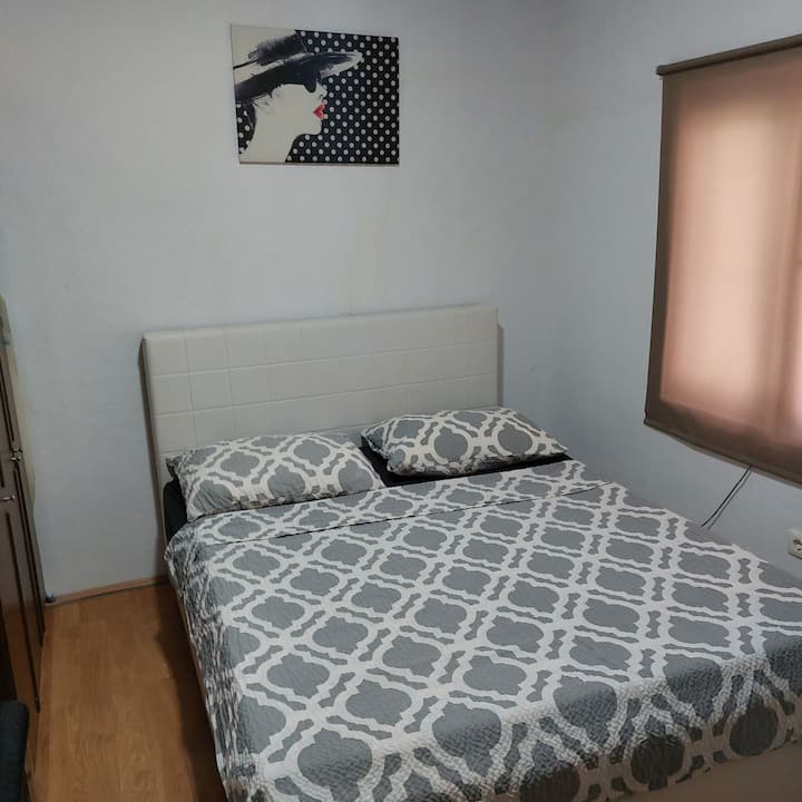 Masayang bahay na may libreng paradahan at magandang barbeque na lugar.