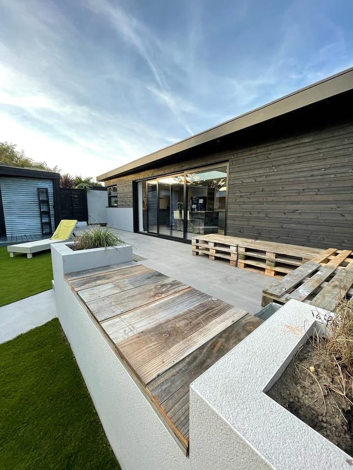 Ang Half Way House - Modernong bungalow malapit sa beach.