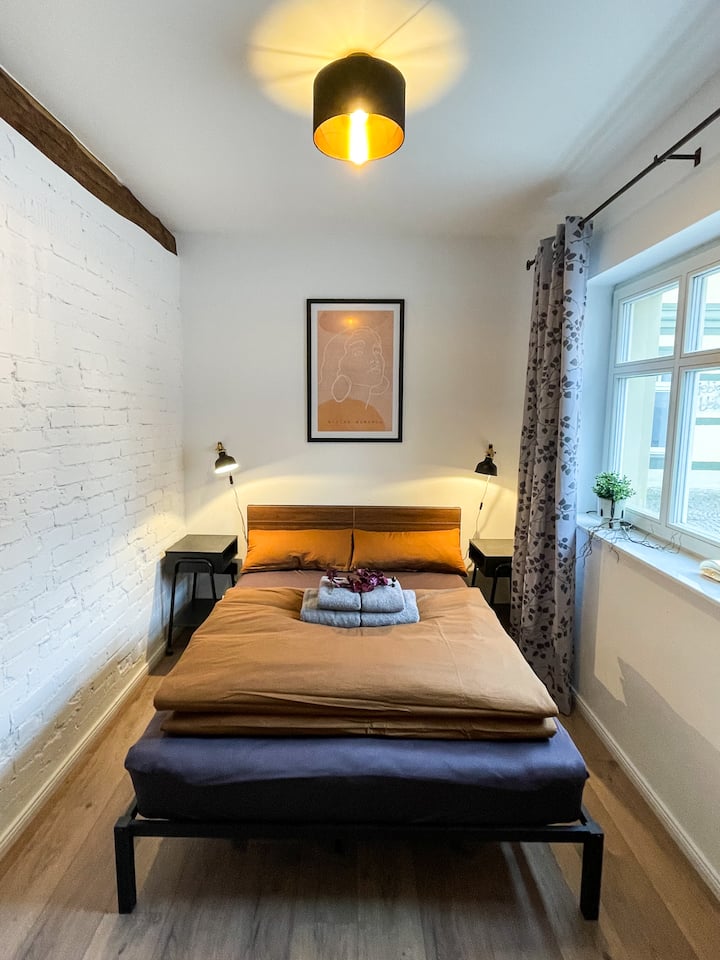 naka - istilong, gitnang apartment na may paradahan