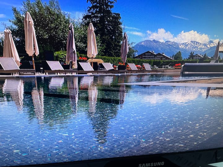 Magandang studio sa Crans - Montana pool, sauna, hammam