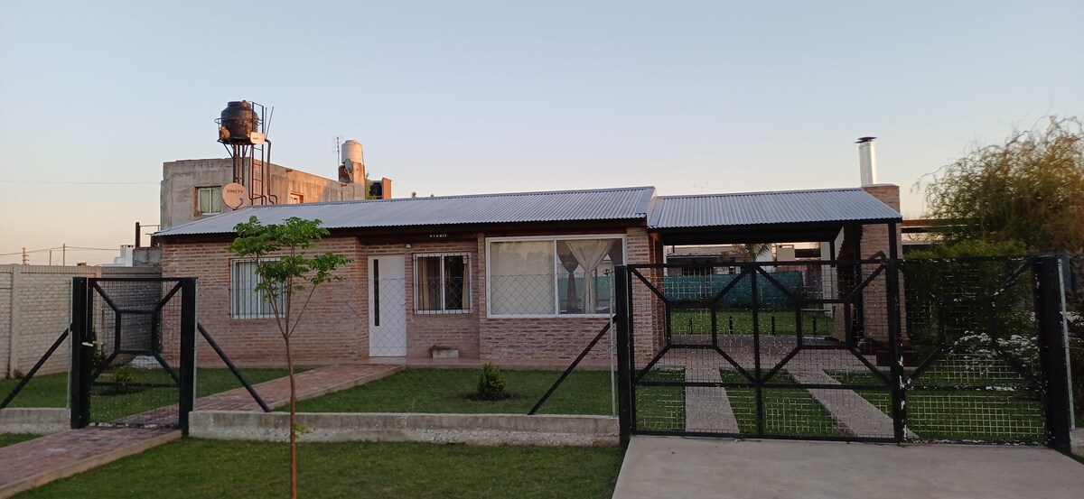 Napakahusay na bahay na may dalawang silid - tulugan para sa 5 tao, na may lahat ng amenidad, serbisyo at seguridad, kabilang ang WIFI, alarm, natural gas, lahat ng mga naka - air condition na kapaligiran, swimming pool na may filter, solarium, grill, garahe para sa dalawang kotse, malalaking kapaligiran, panloob at panlabas na banyo, ilang metro mula sa Rosario airport at open mall shopping na may mahalagang supermarket. Ang tahimik na kapitbahayan na may madaling access sa pamamagitan ng dalawang pangunahing ruta, ang isa sa mga ito ay 30 metro lang ang layo.