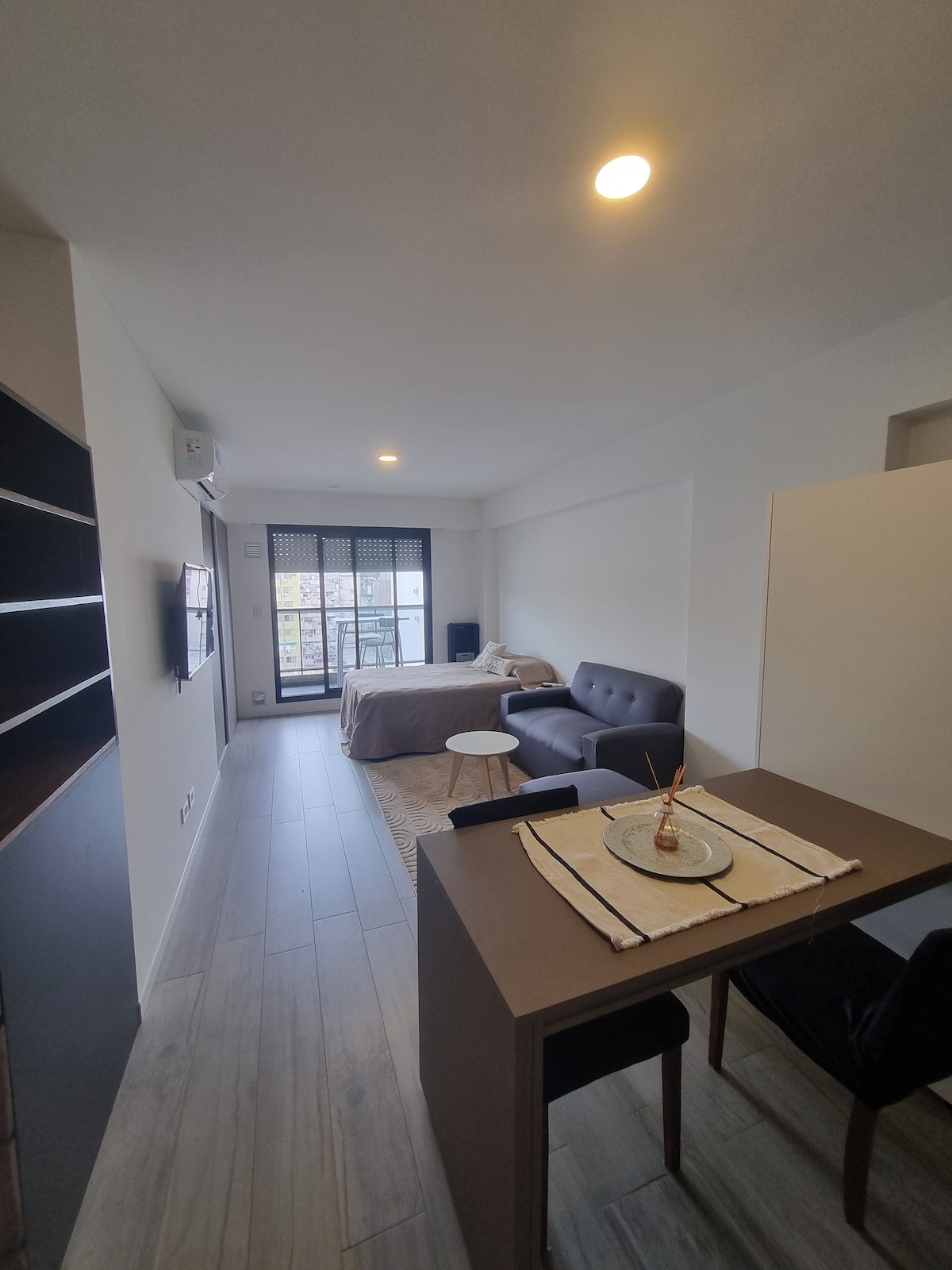 Bagong downtown, maluwag, moderno at napakaliwanag na studio apartment. Kumpleto ang kagamitan, mayroon itong 42"TV (NEFLIX, Prime Video, Disney+), tableware at electro, bed linen at tuwalya. Mayroon itong balkonahe kung saan matatanaw ang ilog at matatagpuan 100 metro ito mula sa iconic na Bv. Oroño, sa lugar ng mga parke, bar at restawran, walang kapantay na lumabas at mamasyal, sa araw at sa gabi. Pribadong garahe sa PB sa establisimyento na kasama sa presyo, na angkop para sa kotse, SUV o maliit na van.