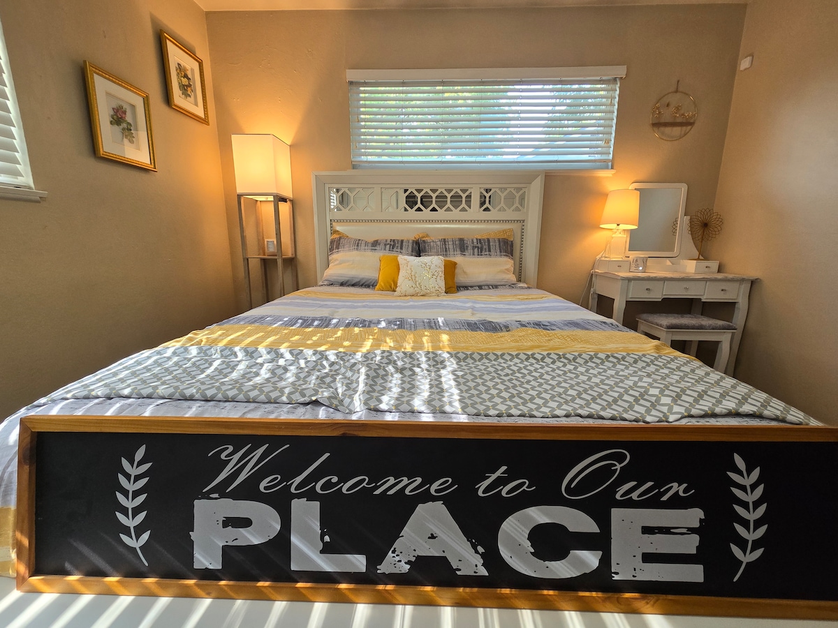 Unwind in Mariposa Cottage, our cozy one-bedroom guesthouse, nestled in a safe, central, and family-friendly Sacramento neighborhood. Just one block from Colonial Park—a 2+ acre community space with a playground, kiddie pool, picnic areas, and sports facilities—you’ll find plenty to enjoy nearby. Only 12 minutes to downtown/midtown’s restaurants, entertainment, and activities, and minutes from UC Davis Medical Center, grocery stores, and more.