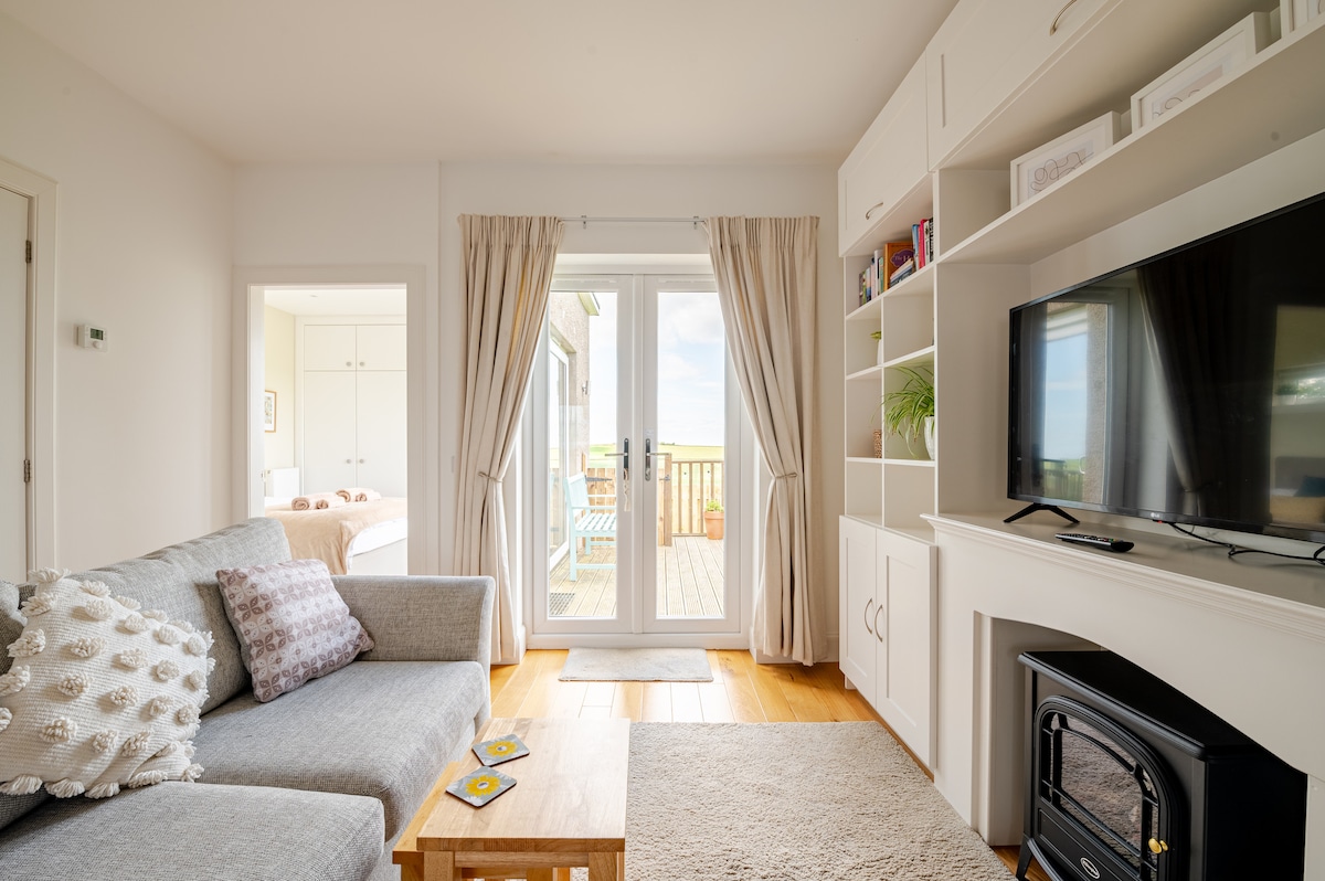 Ganap na self-contained, moderno at malinis na annex na may ganap na tanawin ng kanayunan at bahagyang tanawin ng dagat. Pribadong deck 1x double bed, 1x sofa bed Sariwang linen at mga tuwalya Bagong pinahusay na full fiber WiFi 10 minutong biyahe - mga lokal na istasyon ng tren, mga hintuan ng bus, mga tindahan, mga restawran 10 minuto lang sa pamamagitan ng tren ang Edinburgh Sa loob ng 30 minutong biyahe - Ratho EICA, mga golf course, mga beach Mga daanan ng paglalakad at pagbibisikleta sa pintuan Tahimik na nayon Walang bus/Uber papunta sa village, kaya mahalaga ang kotse Available kapag hiniling: sofa-bed, desk at upuan, travel cot, highchair