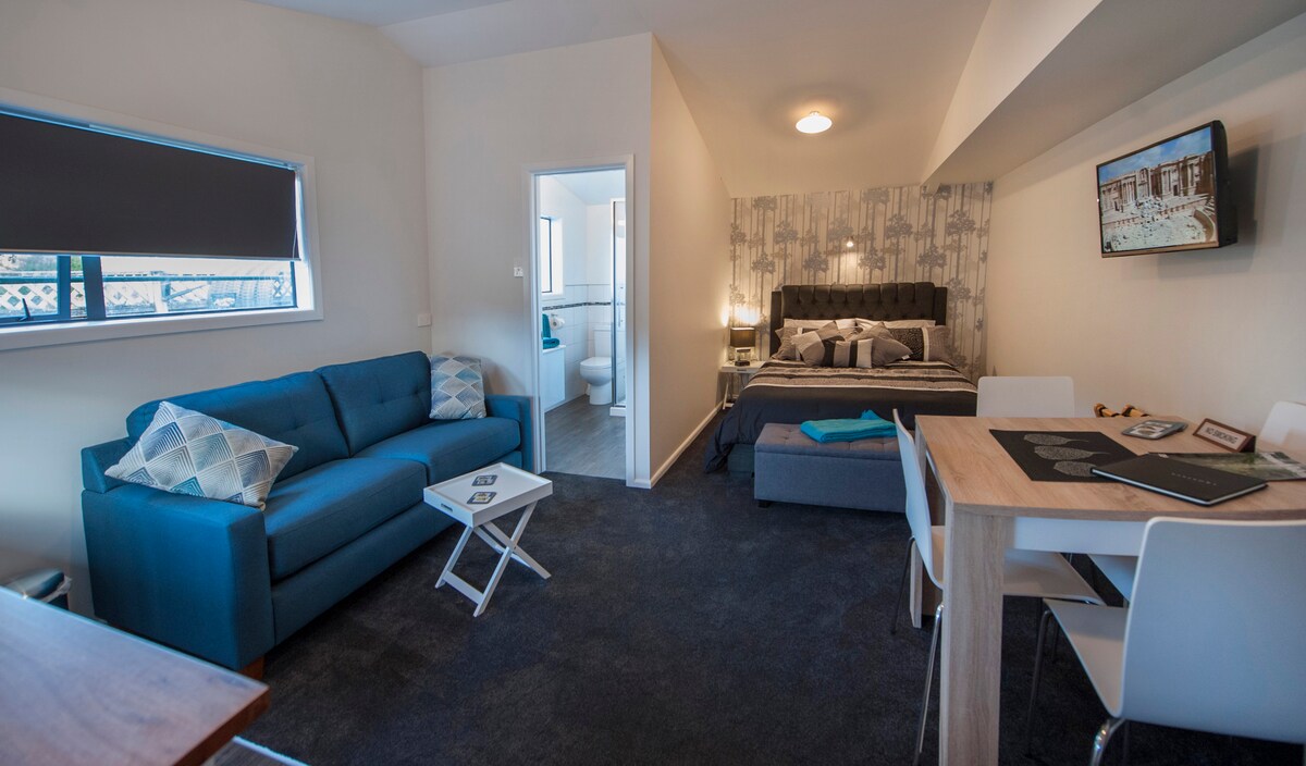 Masiyahan sa aming komportableng, self - contained bedsit unit na kung saan ay hiwalay mula sa pangunahing bahay na may sarili nitong pribadong pasukan at off - street parking. Ang aming yunit ay hindi moderno sa disenyo o dekorasyon ngunit ito ay malinis at sentral na may komportableng double bed, sariwang linen, tuwalya, at mainit na tubig para sa showering. May simpleng almusal para sa unang gabi mo, lahat ay may makatuwirang presyo sa tahimik na cul de sac street, 20 minutong lakad lang sa sentro ng bayan, o 5 minutong lakad sa bus ride para sa mga restawran at mga atraksyong tanawin.