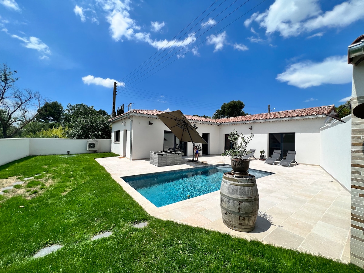 "La Maison aux Oliviers" est un petit mas de charme de 90m2, climatisé, indépendant et situé sur une ancienne oliveraie, au calme dans un jardin paysager offrant une belle piscine privative chauffée et sécurisée. Son large auvent offre la possibilité de vivre à l'extérieur à l'abri du soleil et du vent (mistral). Proche du centre historique, du marché local et des commerces (à pied), elle est parfaitement équipée pour le télétravail (Fibre haut débit)