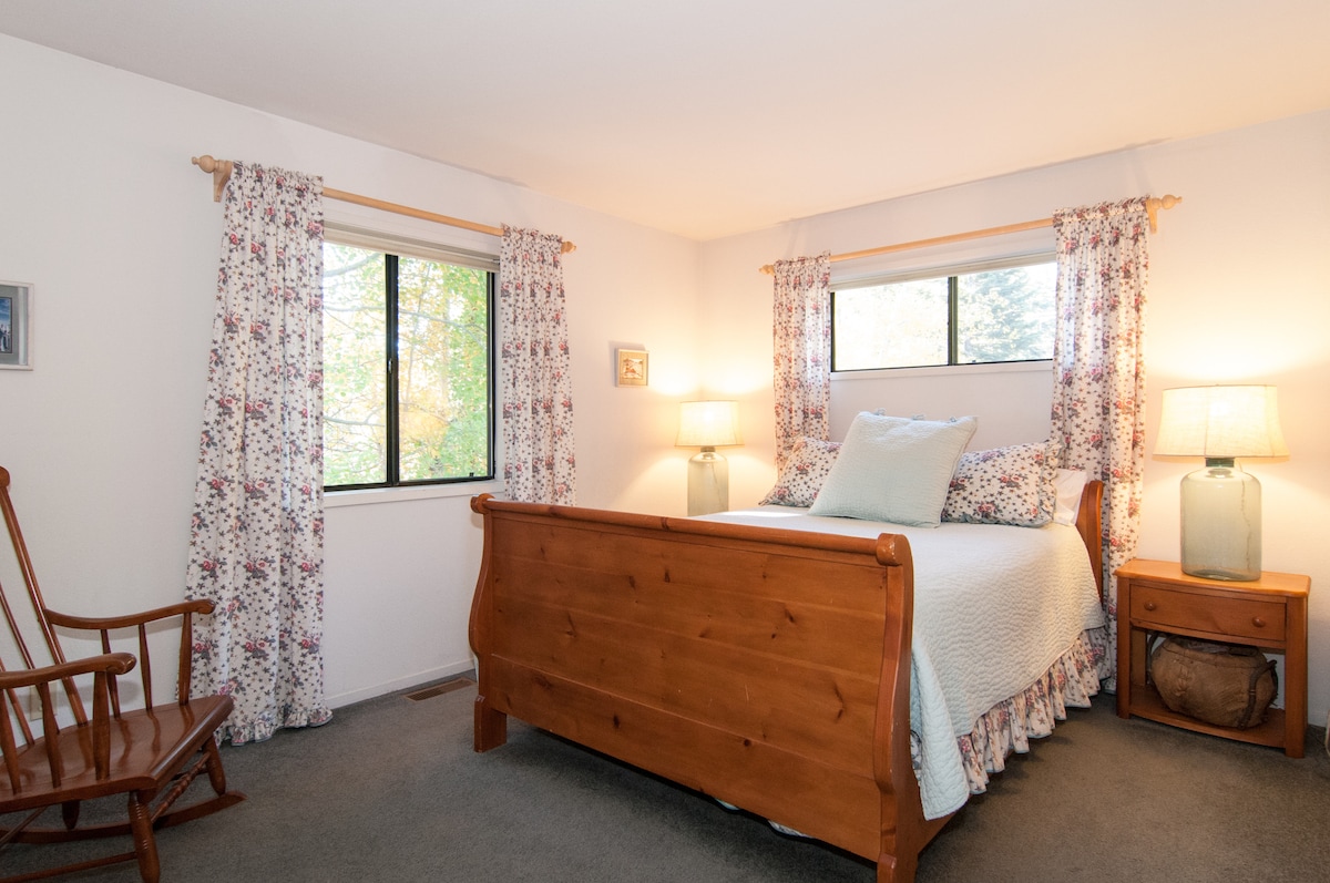 This is an ideal romantic vacation spot for couples. It is located in a quiet, serene neighborhood and has a large deck to enjoy. There is usually snow in winter. This is a kid friendly property with a pack-n-play, booster seat, and a play kitchen area in the downstairs. There is a king bed located upstairs in the loft (winding staircase is steep) and a double bed located downstairs in a bedroom. Permit 073480 TOT T62919 Max occupancy 4 Quiet hours 10pm-8am No visitors during these times