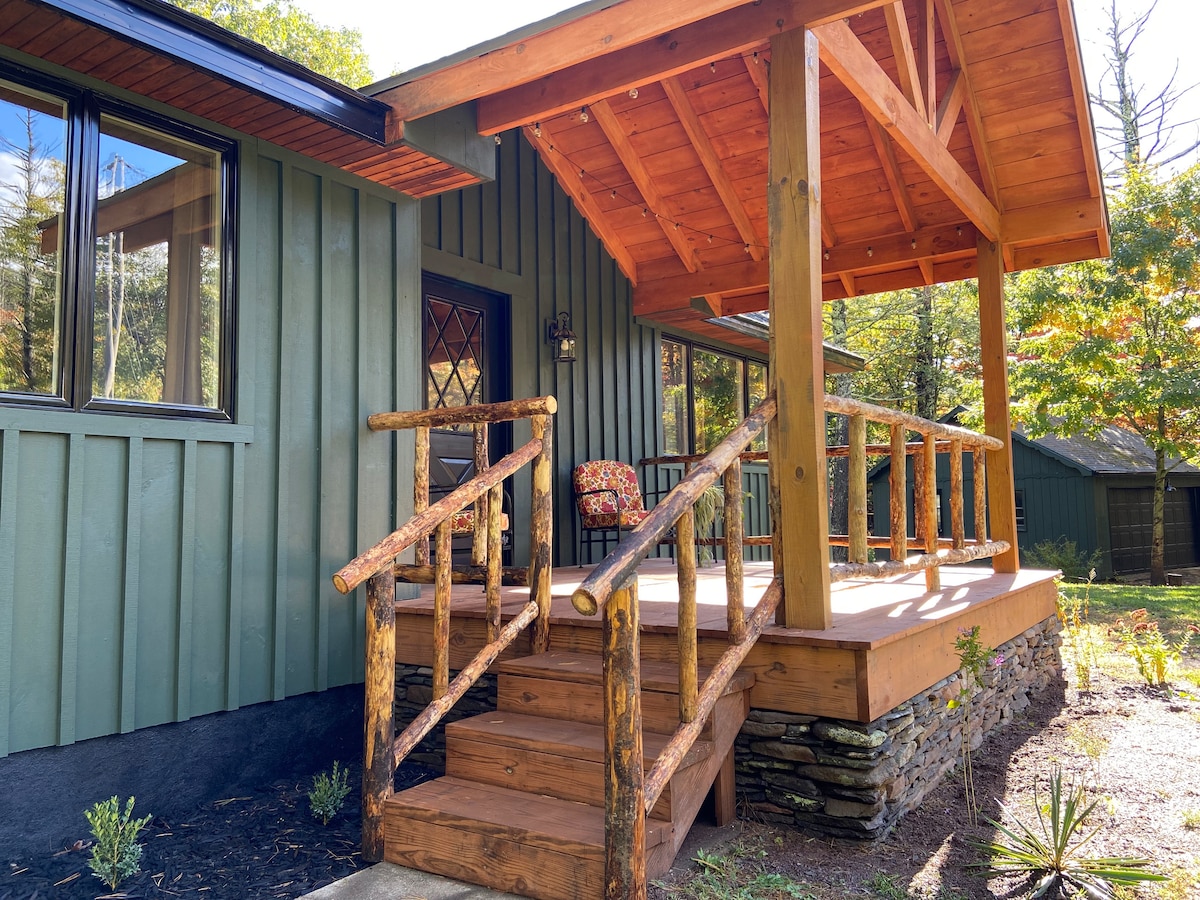 Modern Scandinavia-style riverfront bungalow on 8 acres. Sit on your deck with twinkle lights for coffee/dinner filled w sounds & views of a rushing river; walk across the river into your own private swimming spot! Perfect for a nature retreat, hiking, swimming, fishing (stocked every April), skiing, work w mountain views or write that novel you have always wanted to finish. 2 hrs from the George Washington Bridge. Level 2 EV charger. Hate has no home here-all are welcome.