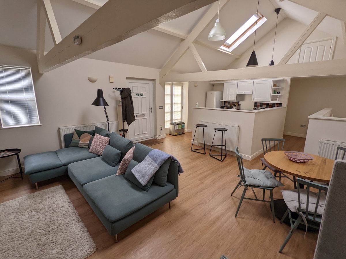 This 200 year old barn has been lovingly renovated to create a modern, open plan apartment that provides spacious accommodation for two. Its whitewashed stone walls and bare timbers retain the charm of the original building and two full length windows open onto a private patio and garden and flood the apartment with sunlight. Furnished with a mixture of the modern and the vintage, the walls are hung with original artworks and these elements combine to create a unique and beautiful retreat.