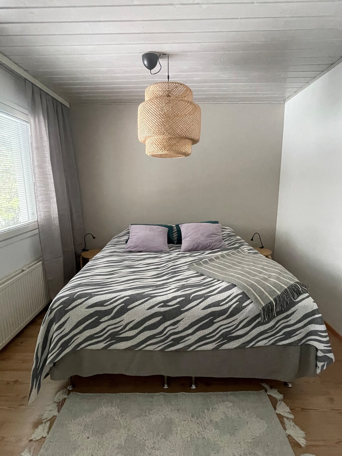 Atmospheric sauna cottage (22m²) sa kanayunan. Tumakas mula sa pang - araw - araw na buhay, masiyahan sa kapayapaan at katahimikan ng isang cottage na matatagpuan sa bakuran ng aming bahay, ngunit ganap sa iyong sariling kapayapaan. Nag - aalok ang komportableng 160 cm ang lapad na higaan ng tuluyan para sa dalawang may sapat na gulang. Painitin mo ang sarili mong saunang pinapainitan ng kahoy, magrelaks sa terrace o sa tabi ng campfire sa laavu. Mamangha sa mabituing kalangitan o sa northern lights nang malayo sa mga ilaw ng lungsod. Sa umaga ng taglamig, puwede kang maglakad sa magagandang daanan ng kagubatan na may niyebe, makinig sa katahimikan ng kalikasan, at huminga sa sariwang hangin.