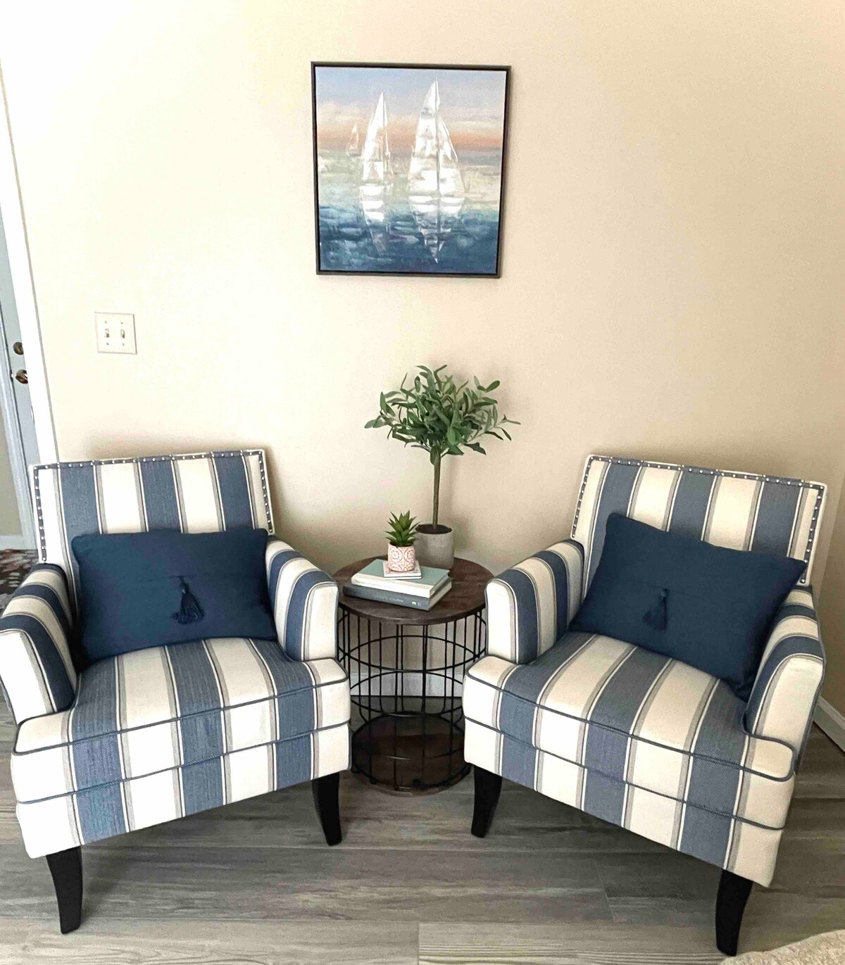 If you'd rather be at the coast, you'll love this 2 bedroom villa with 2 full, updated bathrooms. Recently renovated with new luxury vinyl throughout. 2 separate living areas with smart TVs, Master bedroom is spacious with a walk-in closet where we've added a dedicated space to get ready. There's also a 1 car garage and laundry room for guest use. Wrap around sectional in the living room and a power recliner. Dining table for 4 inside and patio table out!