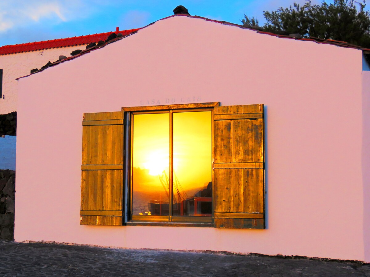Casinha em frente à praia de Porto Pim, com uma vista incrível e bem equipada. A 5 min. a pé do centro da cidade Tem TV cabo e Wi-Fi. Estacionamento gratuito perto de casa e espaço para guardar as suas bicicletas dentro de casa. Situa-se num antigo bairro de pescadores de frente para a baía e praia de Porto Pim e para o Forte de São Sebastião, muito agradável, tradicional e muito muito calmo.
