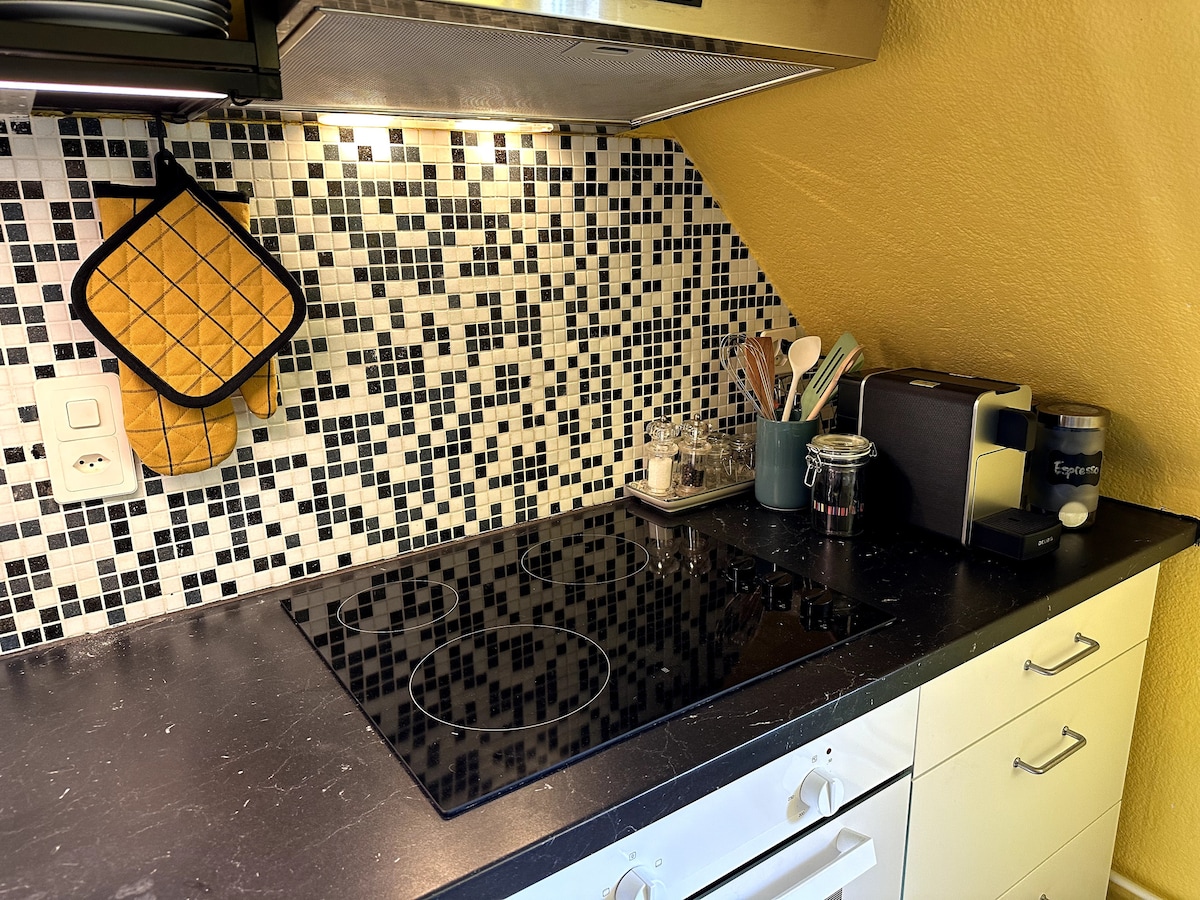 Dreamy studio: Umupo at magrelaks sa tahimik at naka - istilong tuluyan na ito. Perpekto para sa mga mahilig sa kalikasan! Tuklasin ang katahimikan ng naka - istilong, modernong bagong studio na ito na hindi nag - iiwan ng anumang bagay na naisin. Ganap na kumpleto ang kagamitan at nilagyan ng mataas na pamantayan, ang studio na ito ay nag - aalok hindi lamang ng kaginhawaan kundi pati na rin ng isang magandang lokasyon na magpapasaya sa mga mahilig sa kalikasan. Masiyahan sa tahimik na paglalakad sa kanayunan habang malapit pa rin sa lahat ng amenidad ng buhay sa lungsod.