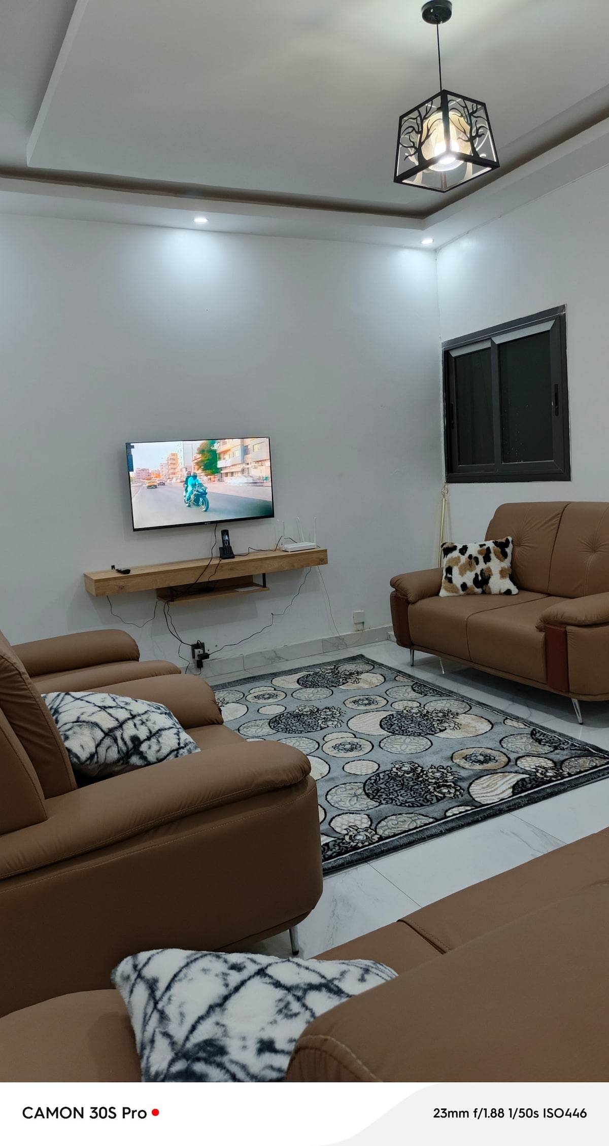 T3 na may 2 silid - tulugan na sala na may matino at maayos na dekorasyon para sa upa zac Mbao golden brioche Mga kumpletong kusina, air conditioning, kasangkapan, washing machine, wifi, libreng paradahan, CCTV, banyo na may shower cubicle at pampainit ng tubig. Ika -5 palapag na apartment na walang elevator, mga balkonahe na may mga malalawak na tanawin, napaka - airy at maliwanag. Tahimik na kapitbahayan at malapit sa transportasyon at mga amenidad. Pambansang lapit 1, toll highway, Keur mbaye Fall TER station. Woyofal kuryente sa iyong gastos