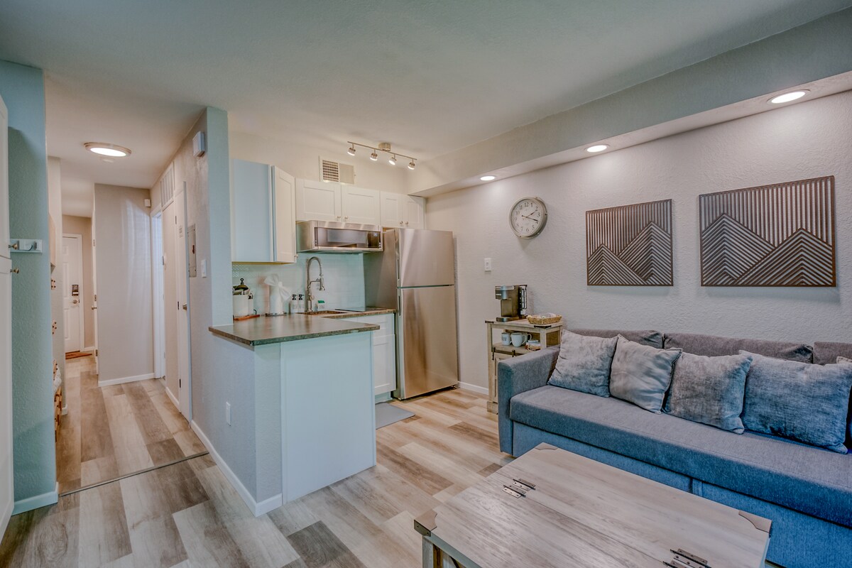 Become one with nature in the heart of the Rockies at the unique modern hideaway that is Jameson's Overlook. Situated just minutes from mid-town Ruidoso, Jameson's Overlook offers spectacular views of Sierra Blanca and its neighboring peaks from a truly unique vantage point elevated high above the surrounding terrain. Whether you're cozying up on the couch, laying in bed, sipping coffee in the dining area or enjoying the fresh mountain air on the patio, the views are stunning from every room.