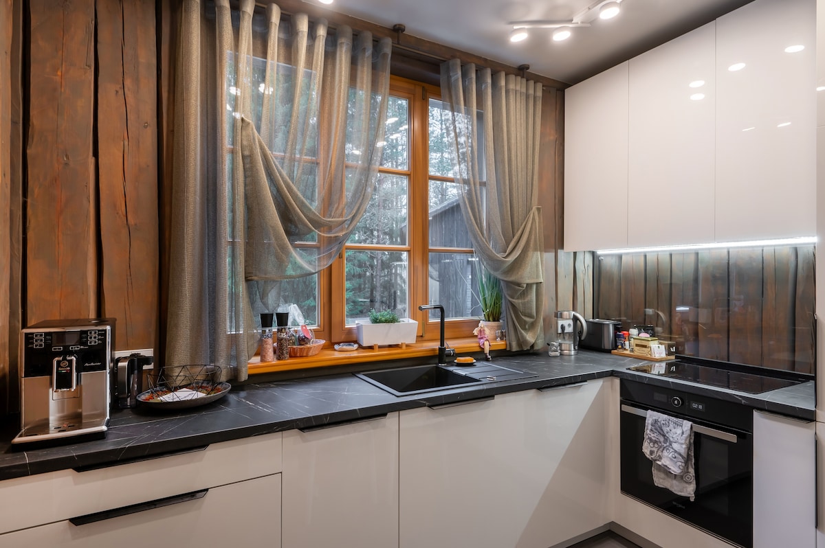 Buong season retreat house para sa mag - asawa o pamilya na may hanggang 2 anak. Ginawa nang may pagmamahal, ang pinakamahusay na mga materyales at pag - aalaga sa kabutihan. Napapalibutan ng mga wild berry field at pine forest. Mapayapa at napaka - nakakarelaks na mga kapitbahay, na nag - aalok ng mga opsyon para sa mga panlabas na isports. 5 minutong lakad sa isang magandang kalye papunta sa dagat : puting dune, mga kalsada ng pedestrian at mga hiking trail. Ang 5 minutong lakad sa kabilang direksyon ay papunta sa Rimi at Top grocery store at sa istasyon ng tren. 10 minutong lakad papunta sa lokal na pamilihan tuwing Biyernes.