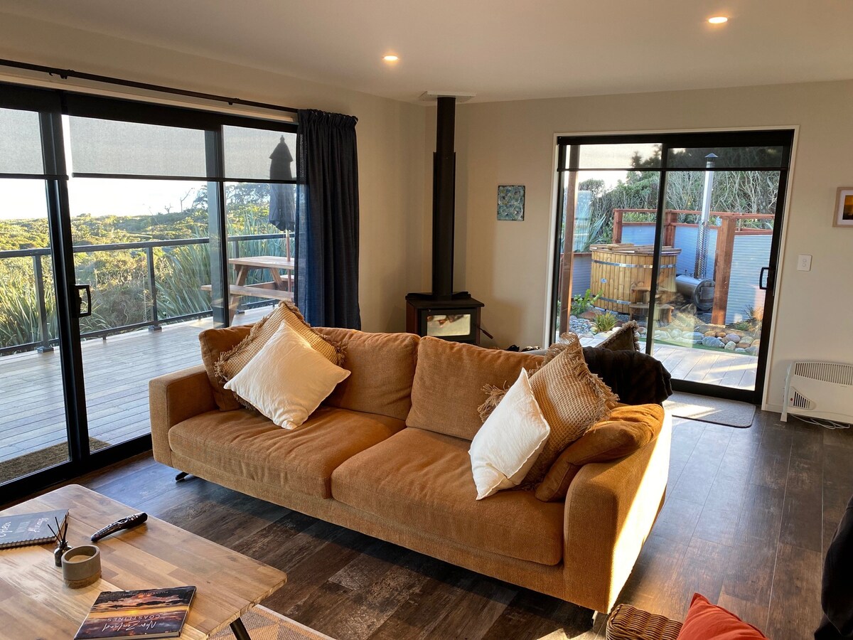 Magrelaks sa natatangi at tahimik na bakasyunang ito. Sasalubungin ka ng mga nakamamanghang matataas na tanawin pagdating mo, na nag - iimbita sa iyo sa aming paraiso. Ang isang silid - tulugan na marangyang bakasyunan na ito ay isang pribado, mainit - init, at nakakarelaks na lugar para makapagpahinga. Napapalibutan ito ng katutubong halaman at may tanawin ng karagatan sa Tasman, kaya perpektong bakasyunan ito para masilayan ang ganda ng West Coast at lahat ng nararapat nitong ialok. Nasa mismong pinto mo ang magandang kalsada sa baybayin na itinuturing na isa sa 10 pinakamagandang daanan sa mundo.