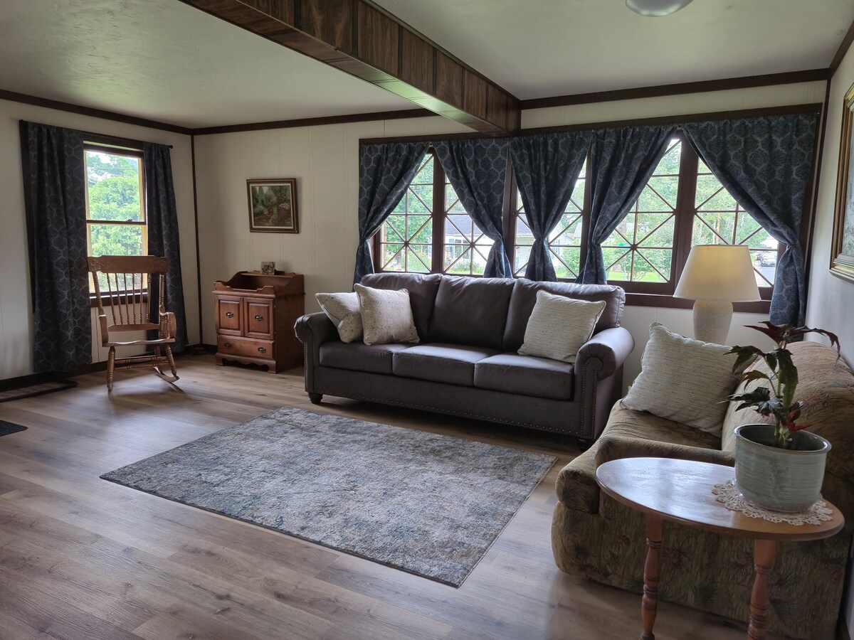 Tuklasin ang aming malinis at komportableng guesthouse studio. Malapit sa bayan ang Bunkhouse pero sapat na malayo para makapagârelax ka at makapagâenjoy ka sa kalikasan nang tahimik. Inayos noong 2020, kumpleto ang lahat ng kailangan mo sa natatanging tuluyan na ito para sa nakakarelaks na bakasyon. â Mabilis na WIFI â Smart TV na may mga Premium Channel â Washer/Dryer â BAGONG Queenâsize na Kutson + Buong Futon â Electric Fireplace â Fire pit na may kahoy Kusina â na Kumpleto ang Kagamitan â Keurig na may mga Pod â Ihawang may Uling â Natatakpan na Patyo na may Mga Upuan na Kahoy â Bluetooth Speaker â Golf + Paglulunsad ng Bangka 1 milya